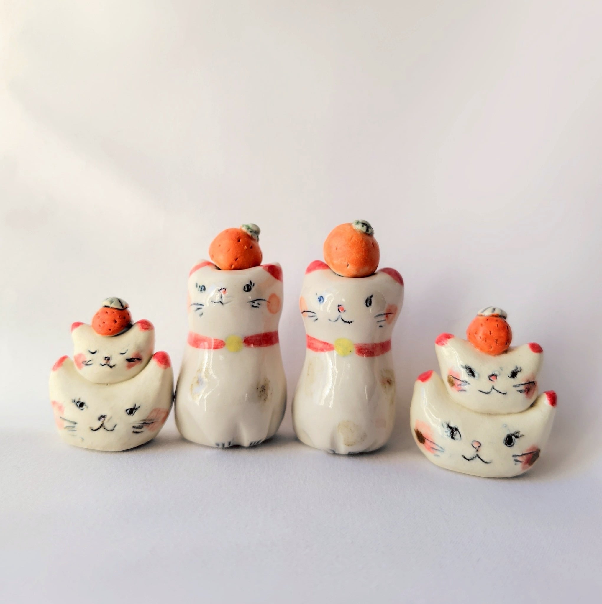 作家ジュウシマツコーポレーションさまから素敵な作品が届きました。 【置物】 手のひらサイズの 陶器の文鳥です。 頭の上に季節のものや おいしいものをのせています。 「目が合ってしまいました!」とお迎えを決めてくださる方が とても多いです。