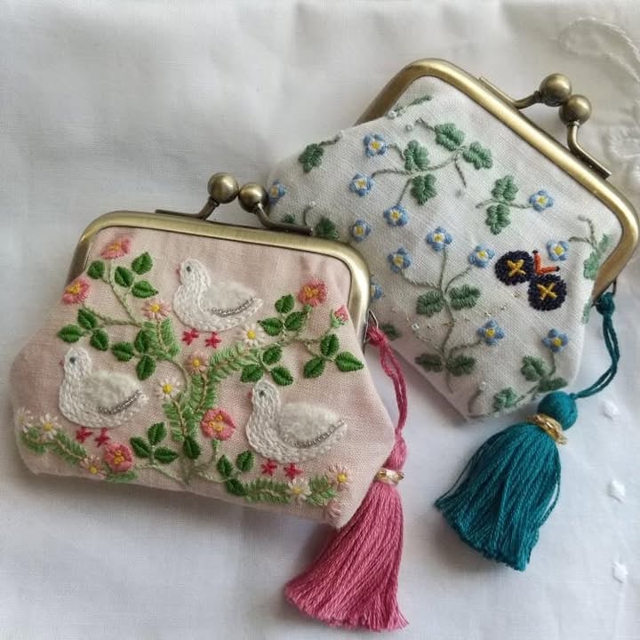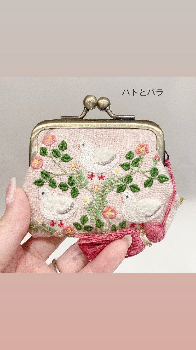 春の可愛さが詰まったお花の刺繍のがま口。