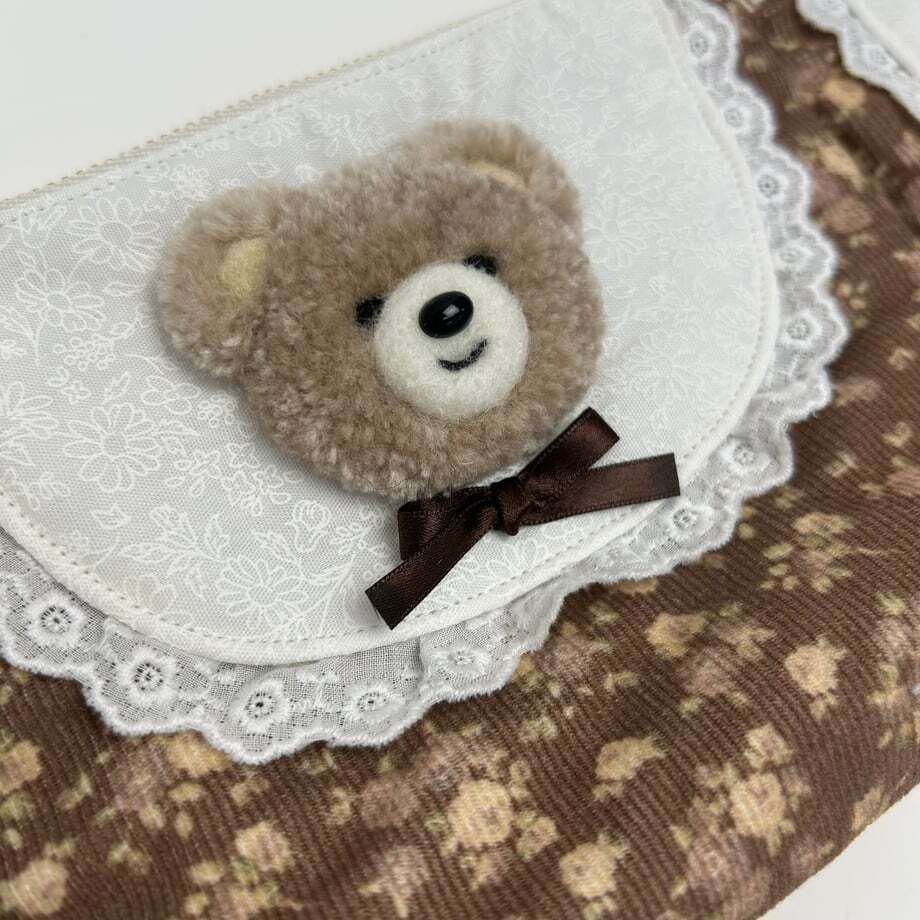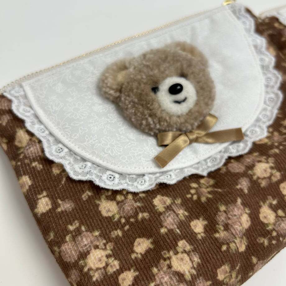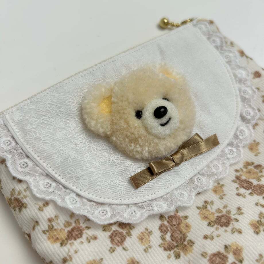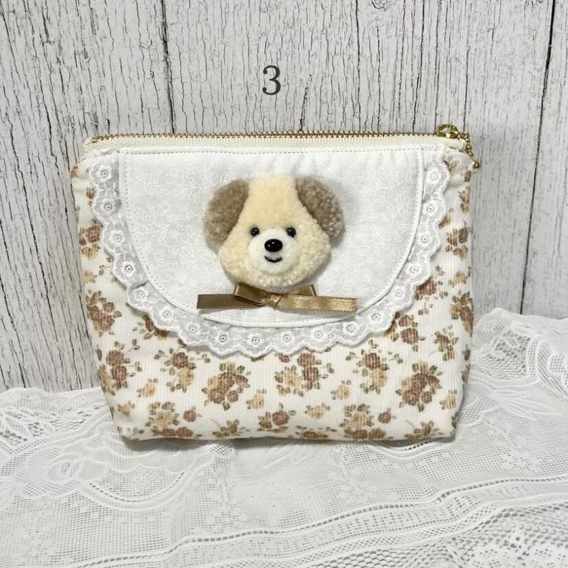 パンチニードルで作ったもこもこの動物たちが付いたポーチです!