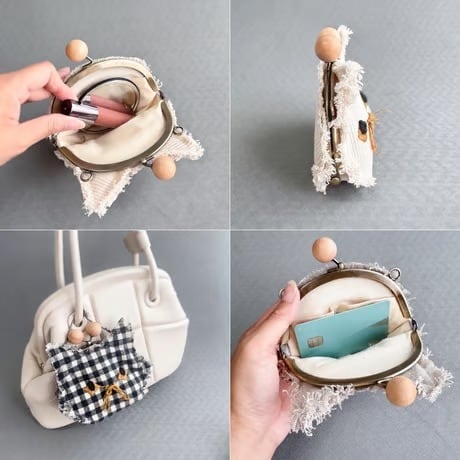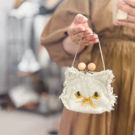 kubomi ねこフェイスがま口ポーチ(取手付)