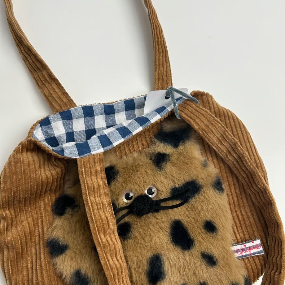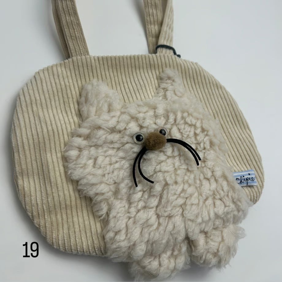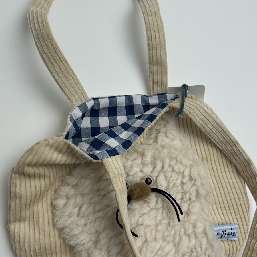 バッグの丸いフォルム、後ろのしっぽ、ちょこんと並んだかわいいおててがチャームポイントです。