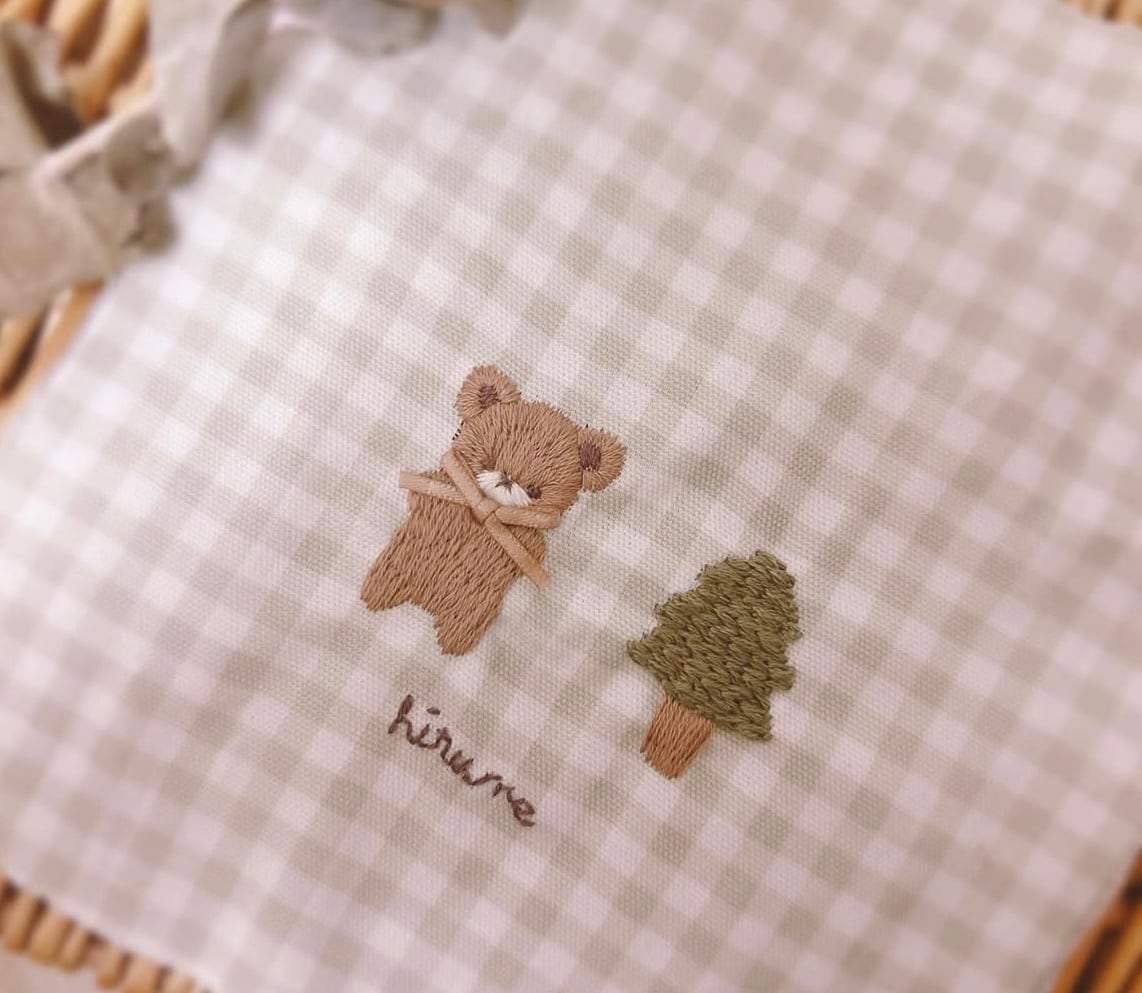 木やお花とどうぶつさんの刺繍が更に森のイメージにつながっています。
