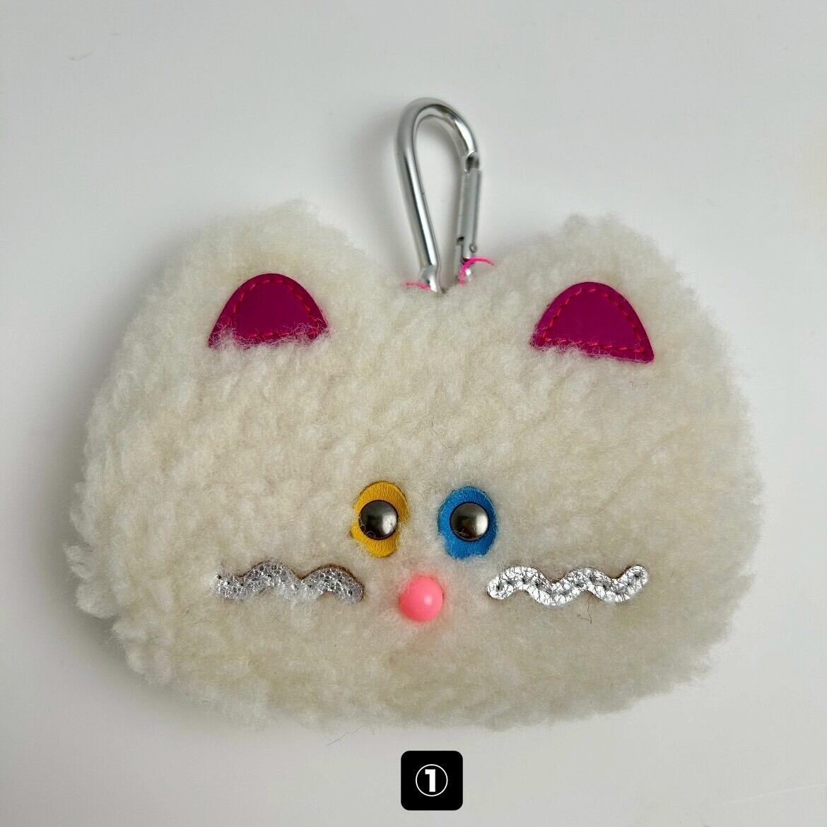 猫と犬をモチーフにした、ふわふわ素材のバッグチャームを制作しています。