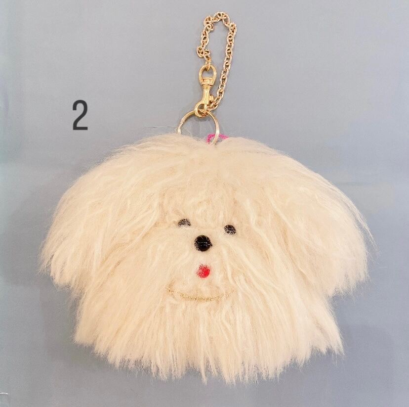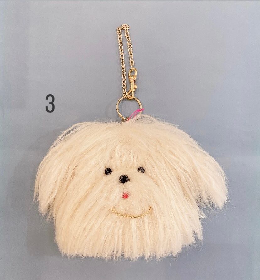 猫と犬をモチーフにした、ふわふわ素材のバッグチャームを制作しています。
