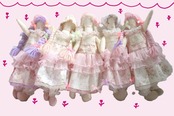 さまざまな生地やレースを使ってお洋服を一つ一つ縫っています。