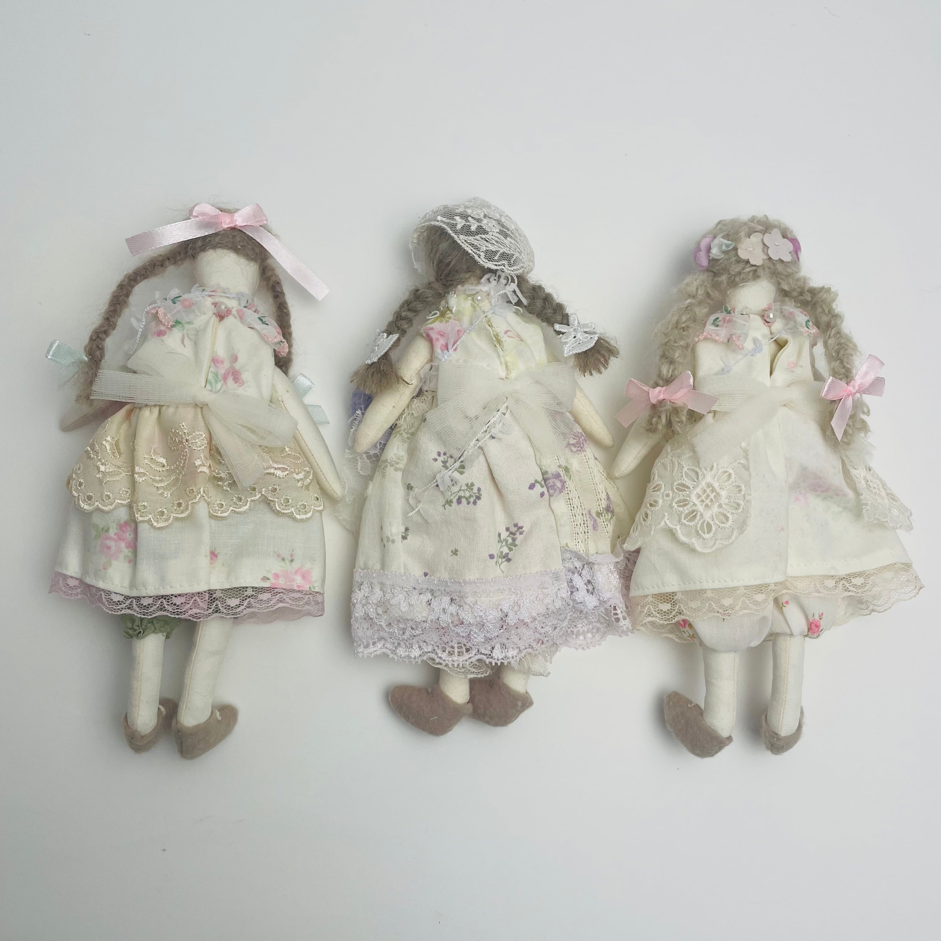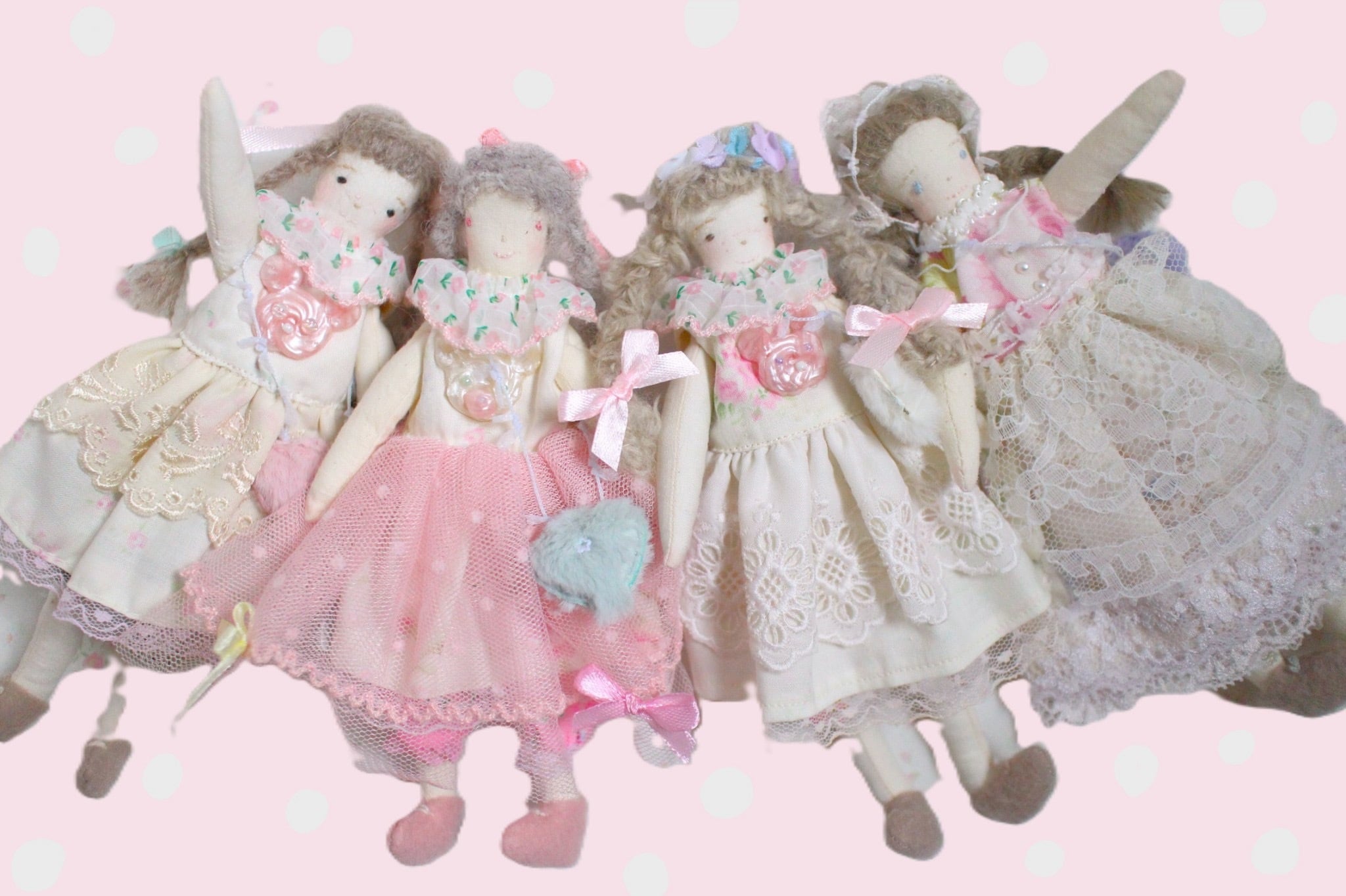 さまざまな生地やレースを使ってお洋服を一つ一つ縫っています。