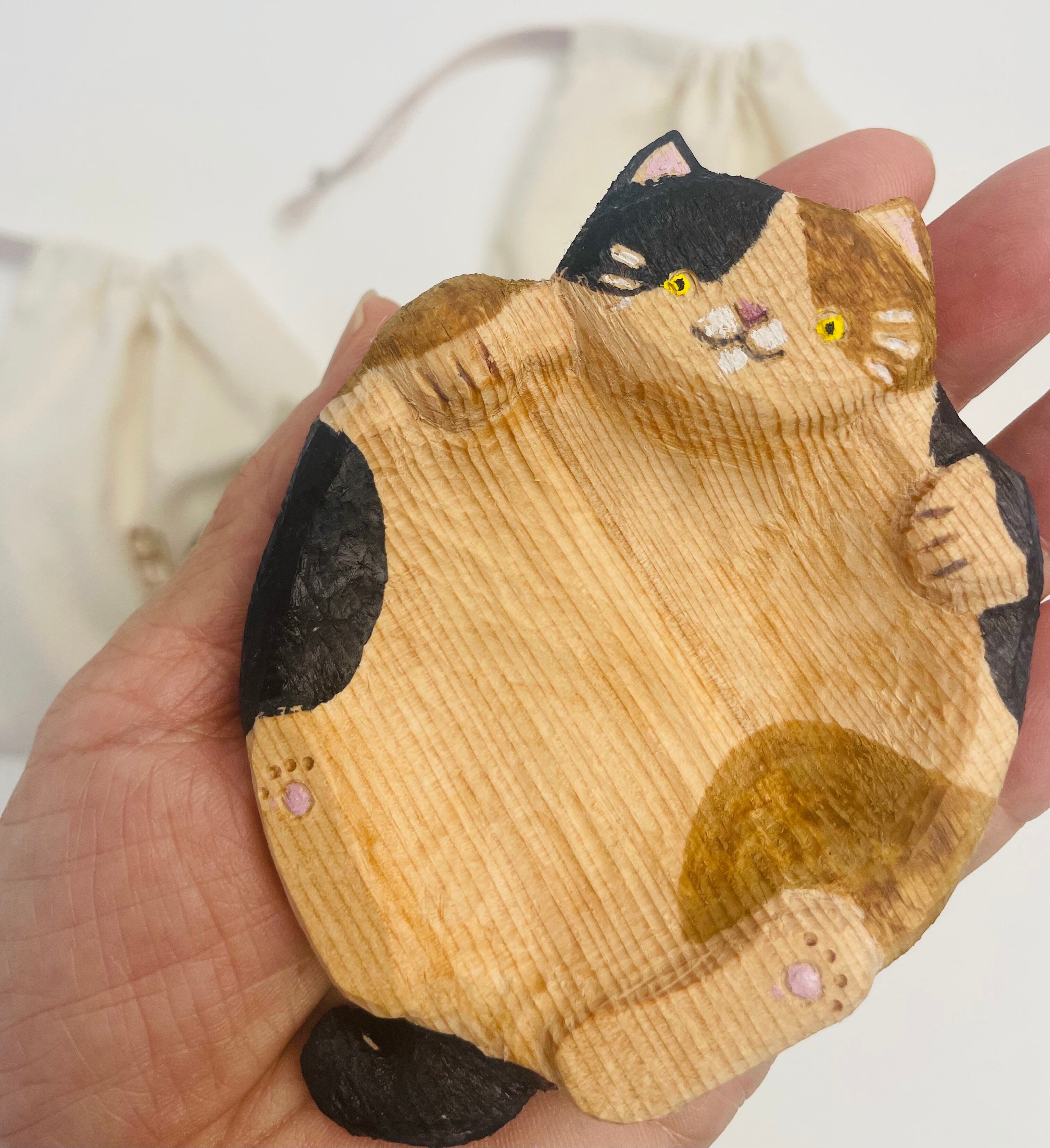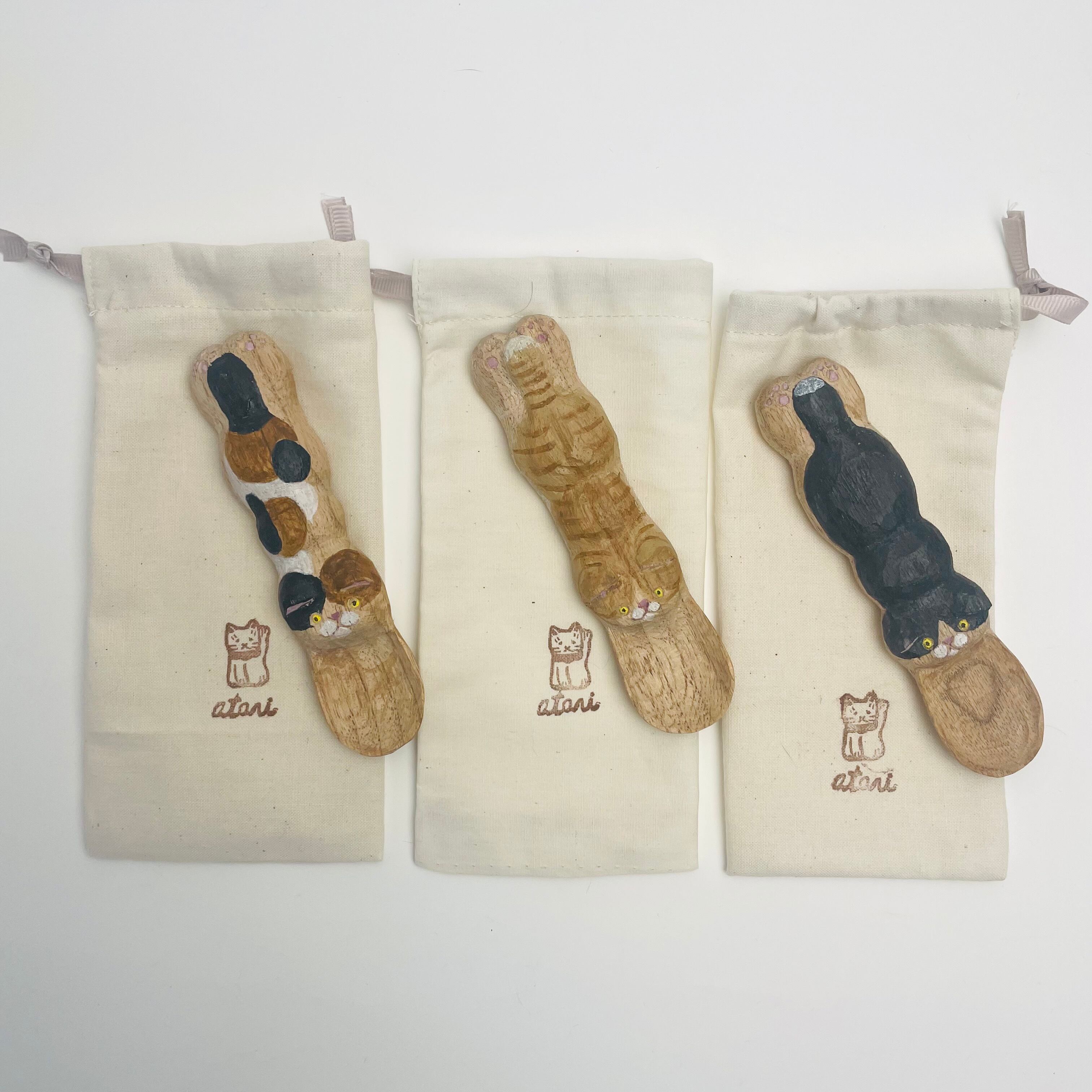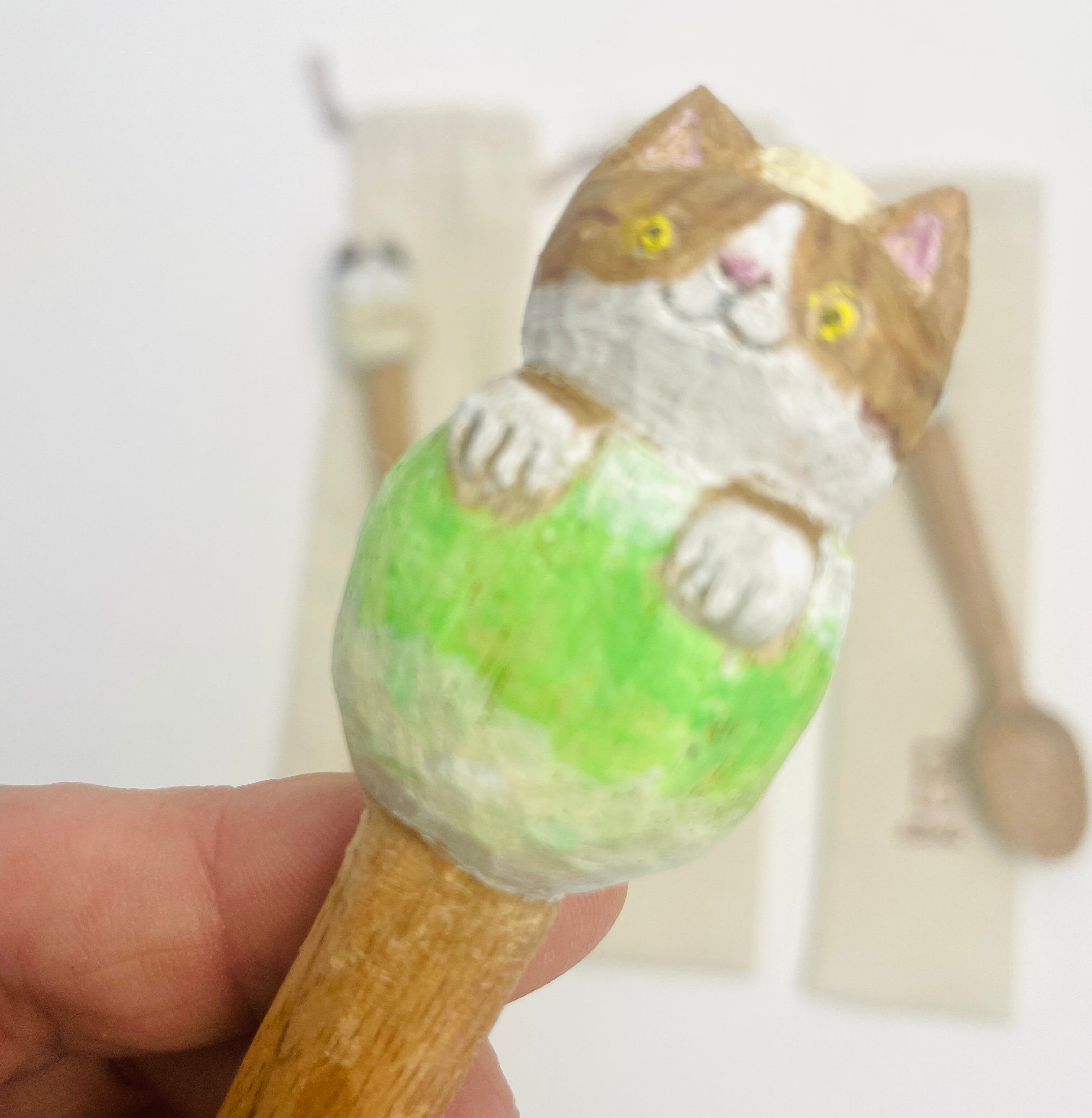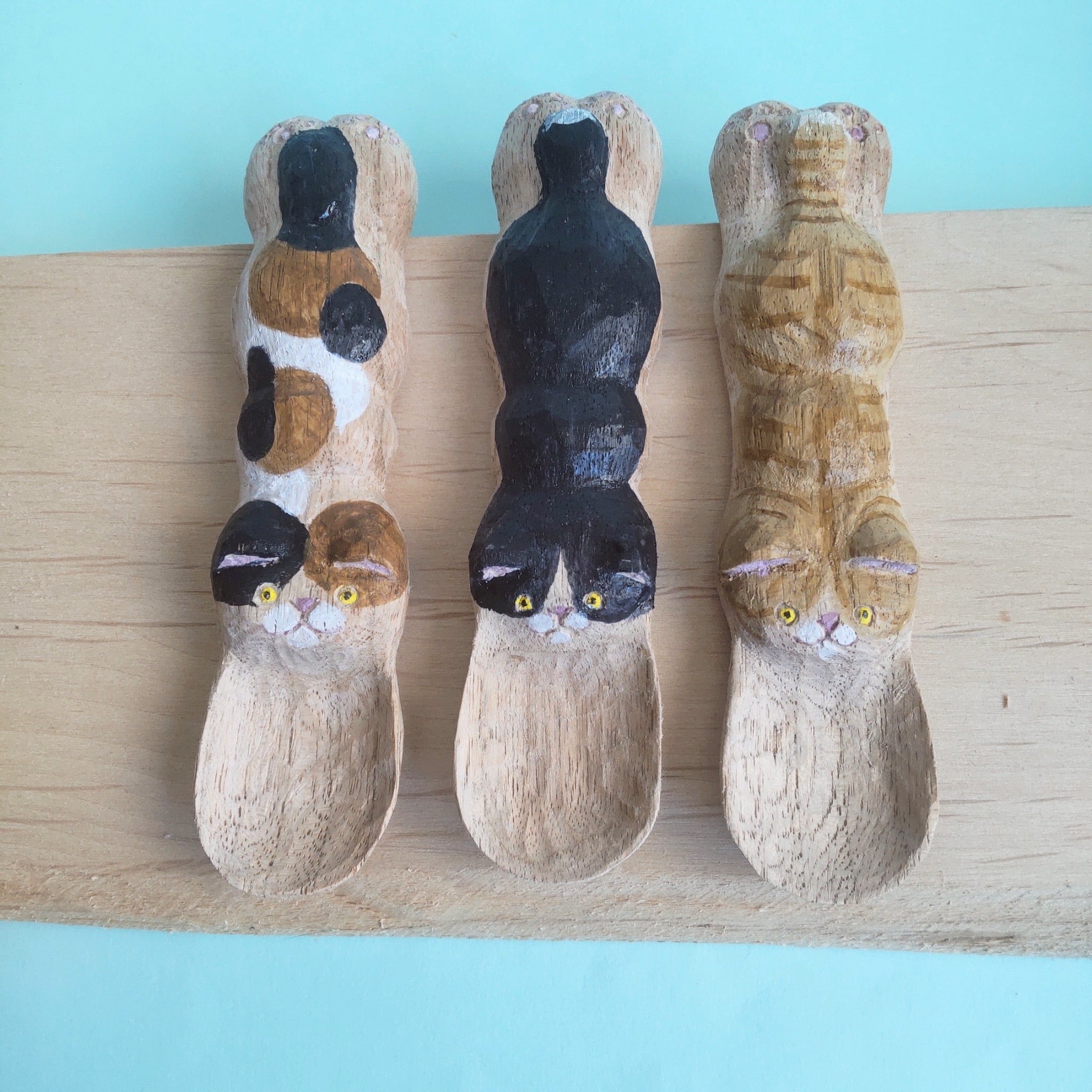天然木 オニグルミでカトラリーを作りました かわいい猫ちゃんの表情を
