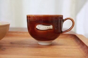 【さかなのマグカップ (あめ釉)】高さ約7cm 内寸約7.5㎝