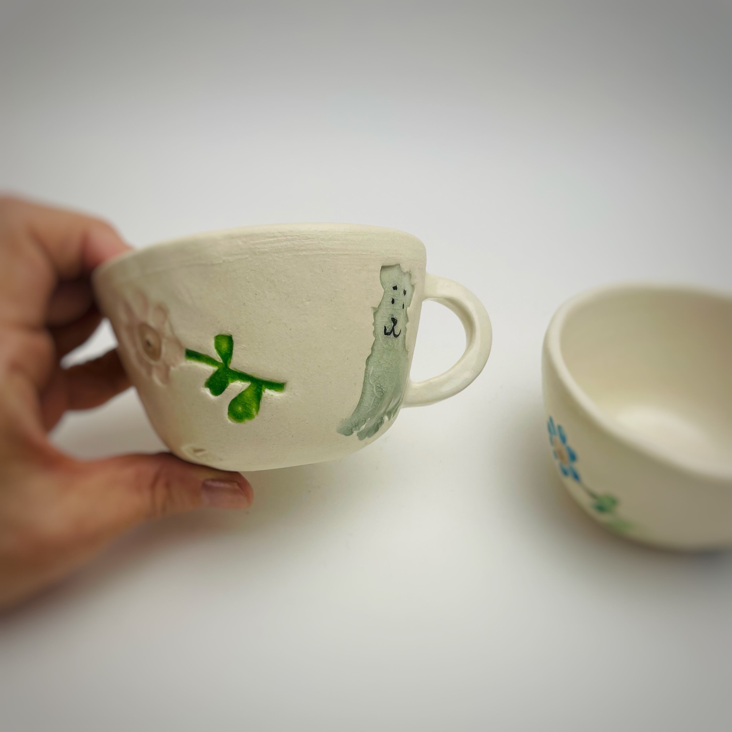 陶土と呼ばれる粘土を主原料としていて上絵具を施して絵付けをしております。