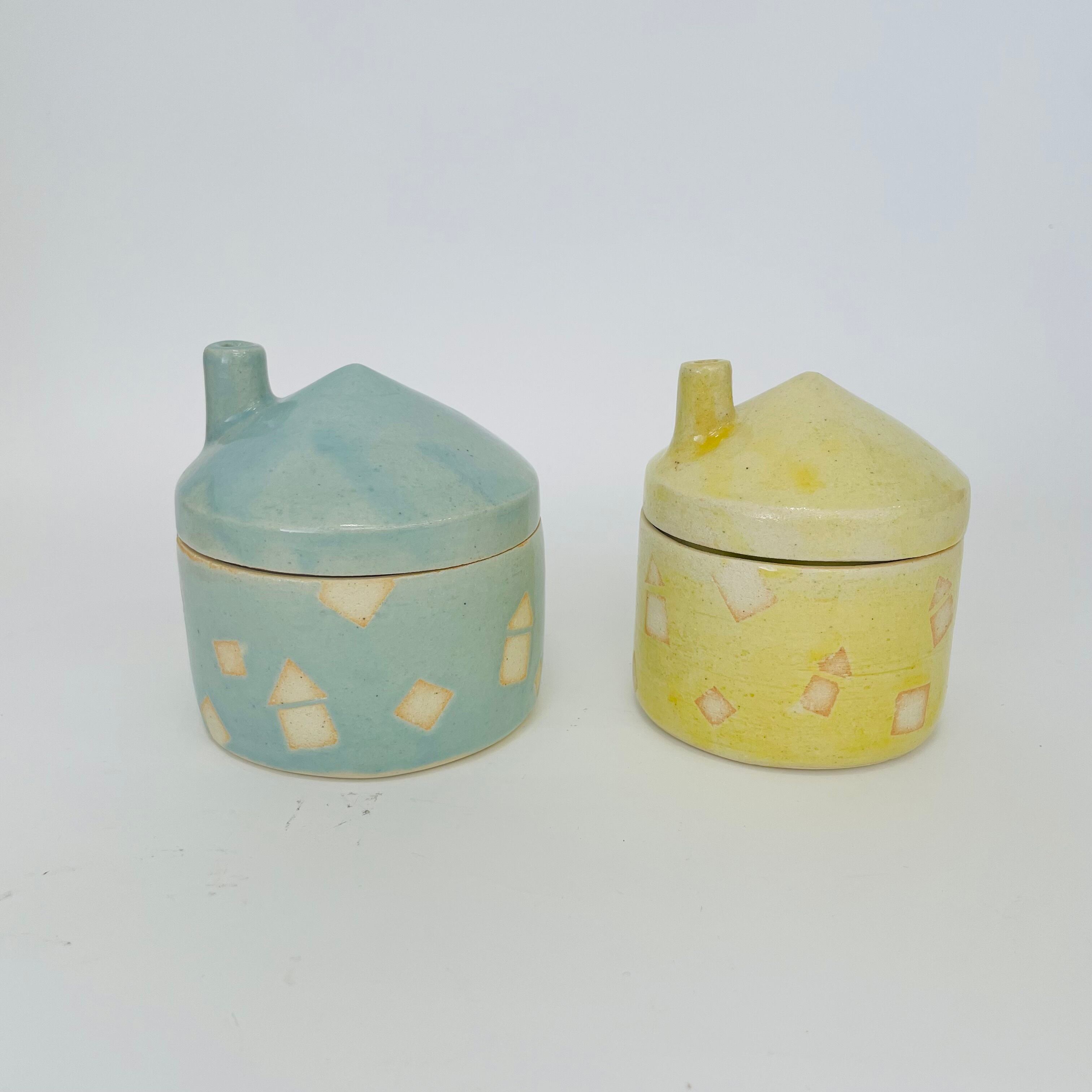 小さなお家砂糖だけでなく、飴玉や お菓子、アクセサリーや 小さな大切なものを入れたり...など。暮らしの片隅にそっとおいてください。・・・