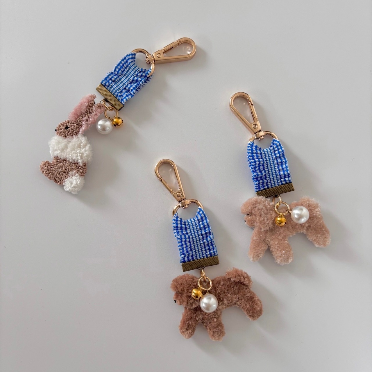 人気のプードルとうさぎをキーホルダーにしました。小さいですが鈴も付いている