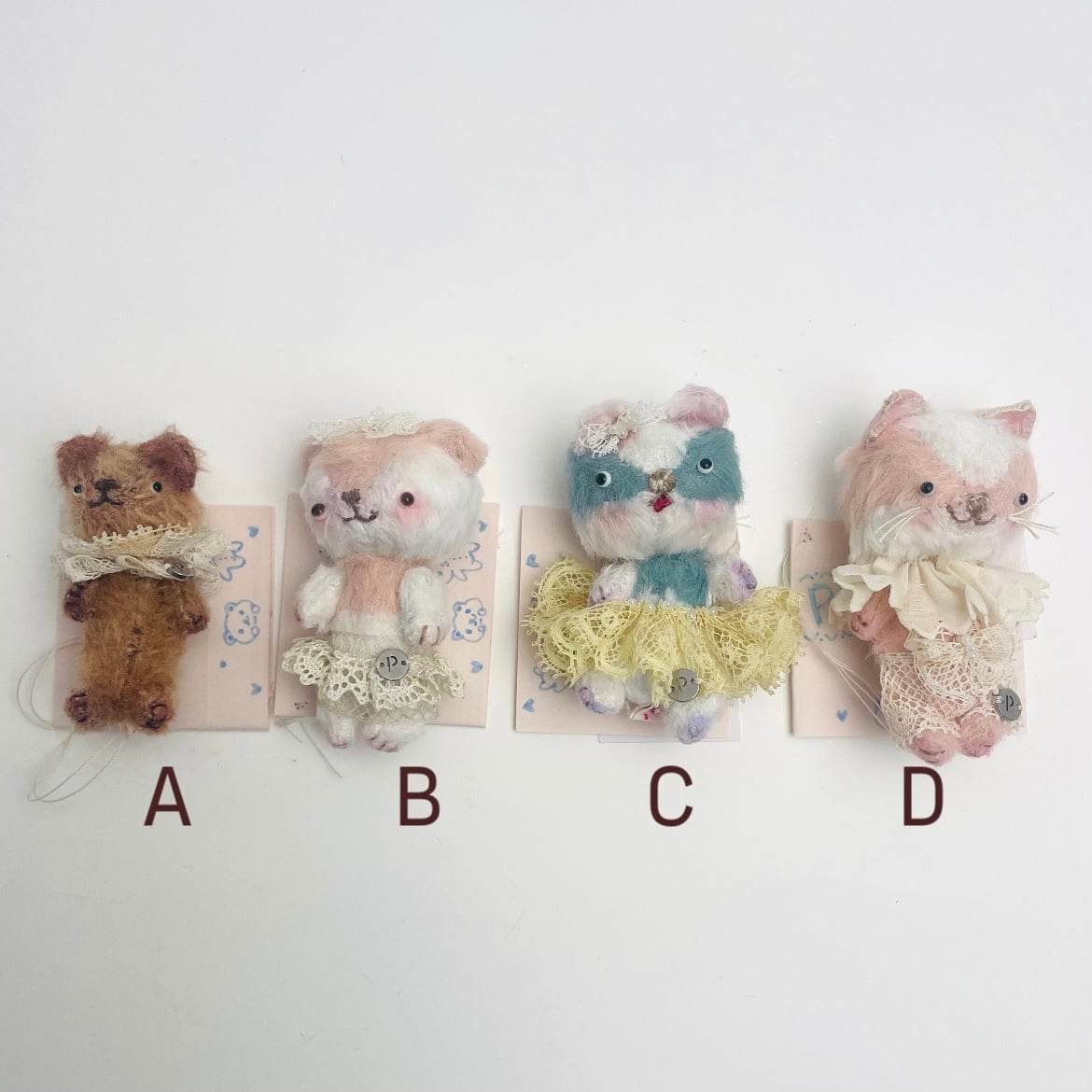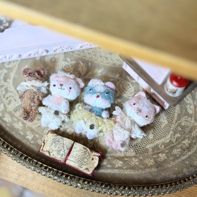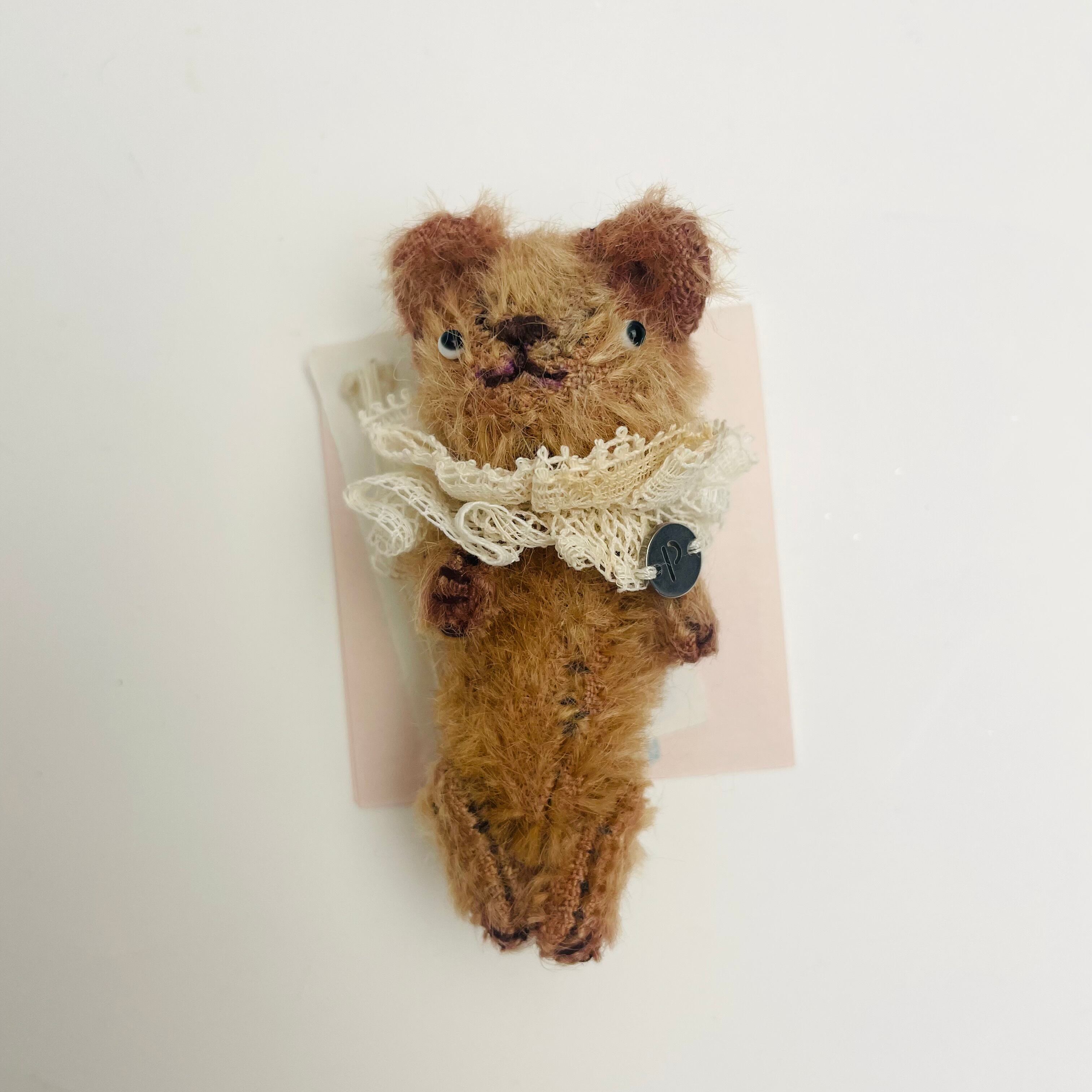 【ミニアンティークベア】(ピンク/白)身長6.5約cm