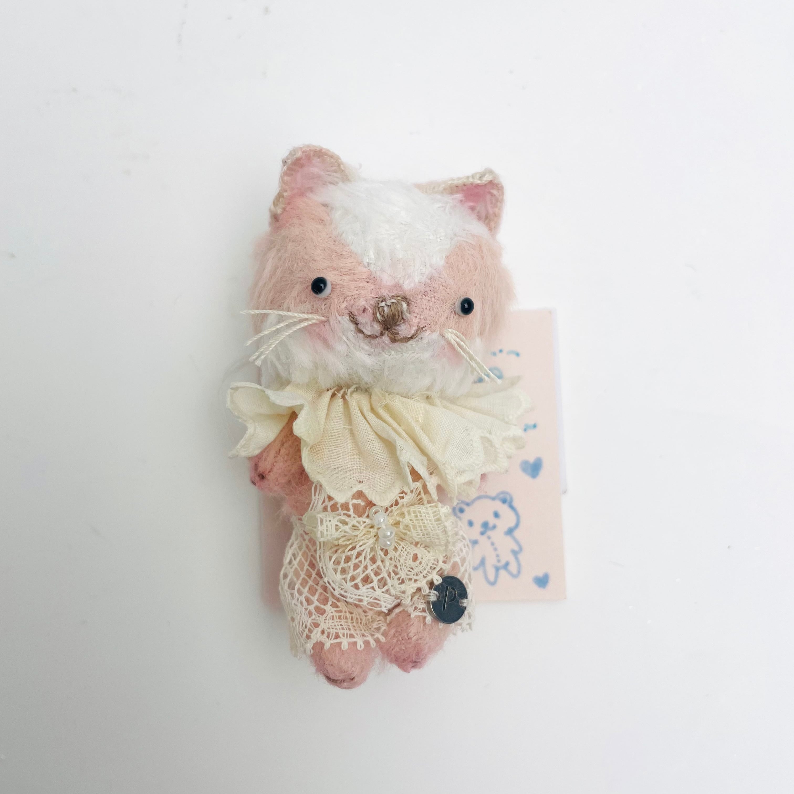 【ミニアンティークネコ】(ピンク/白)身長6.5約cm
