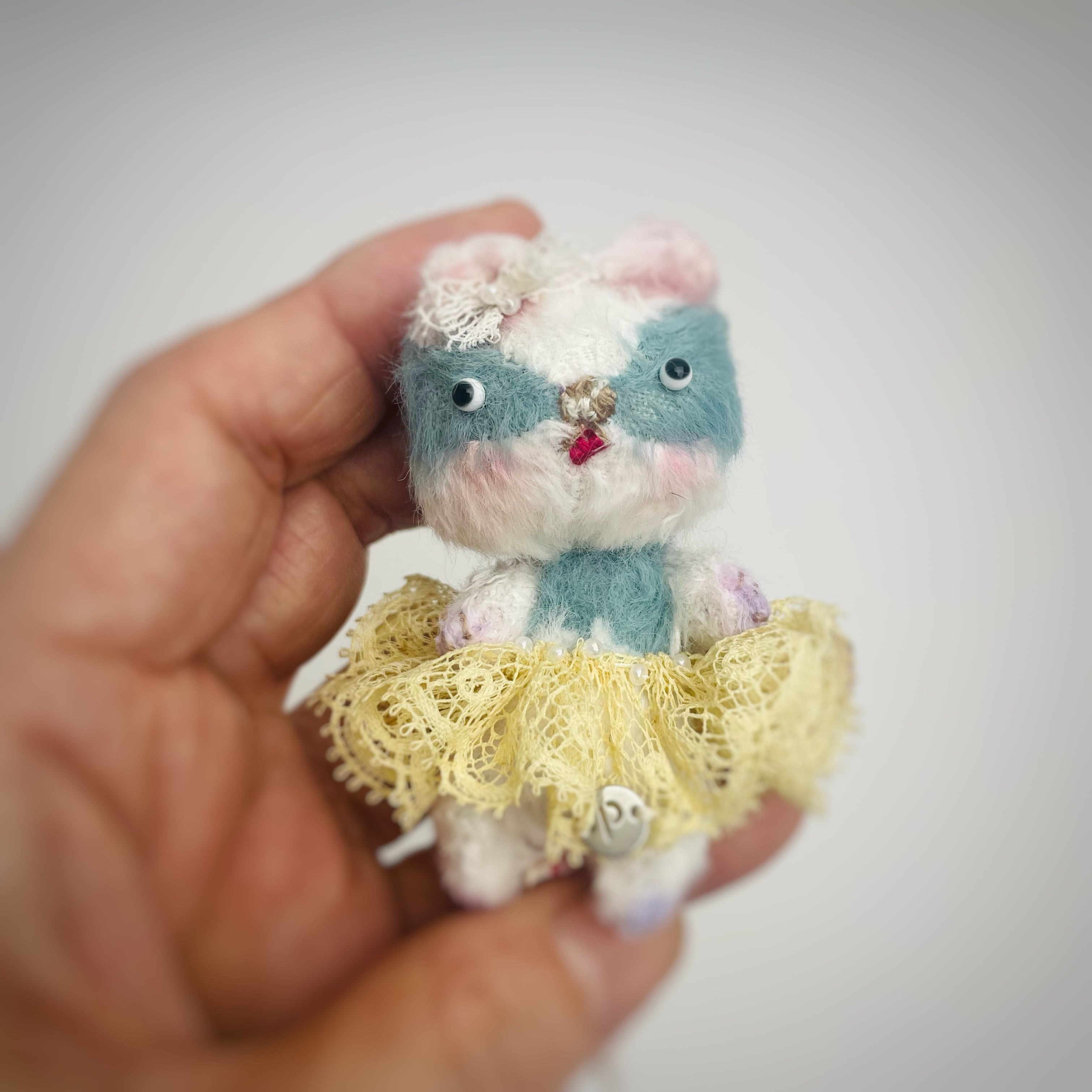 【ミニアンティークベア】(ブルー/白)身長6.5約cm