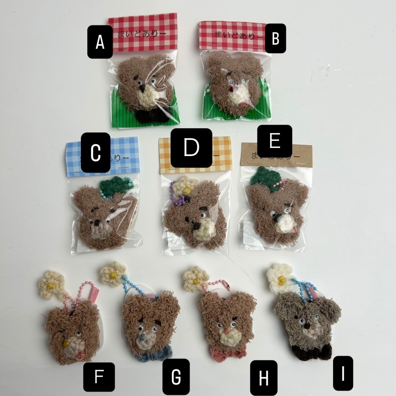 C〜Iはキーホルダーです。