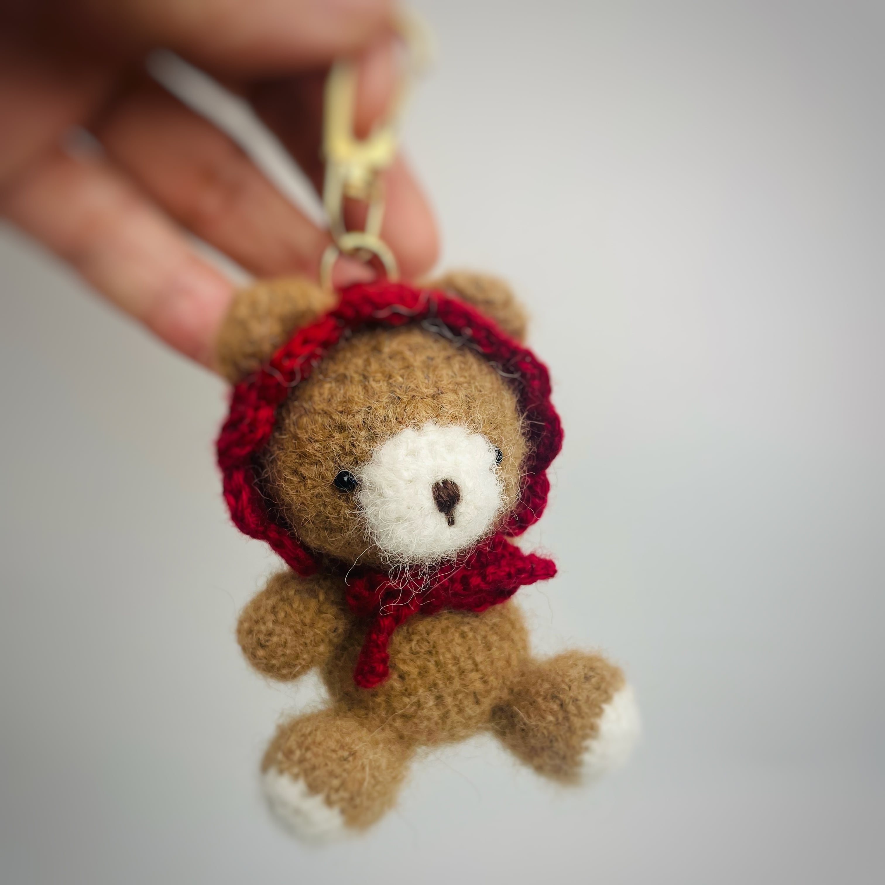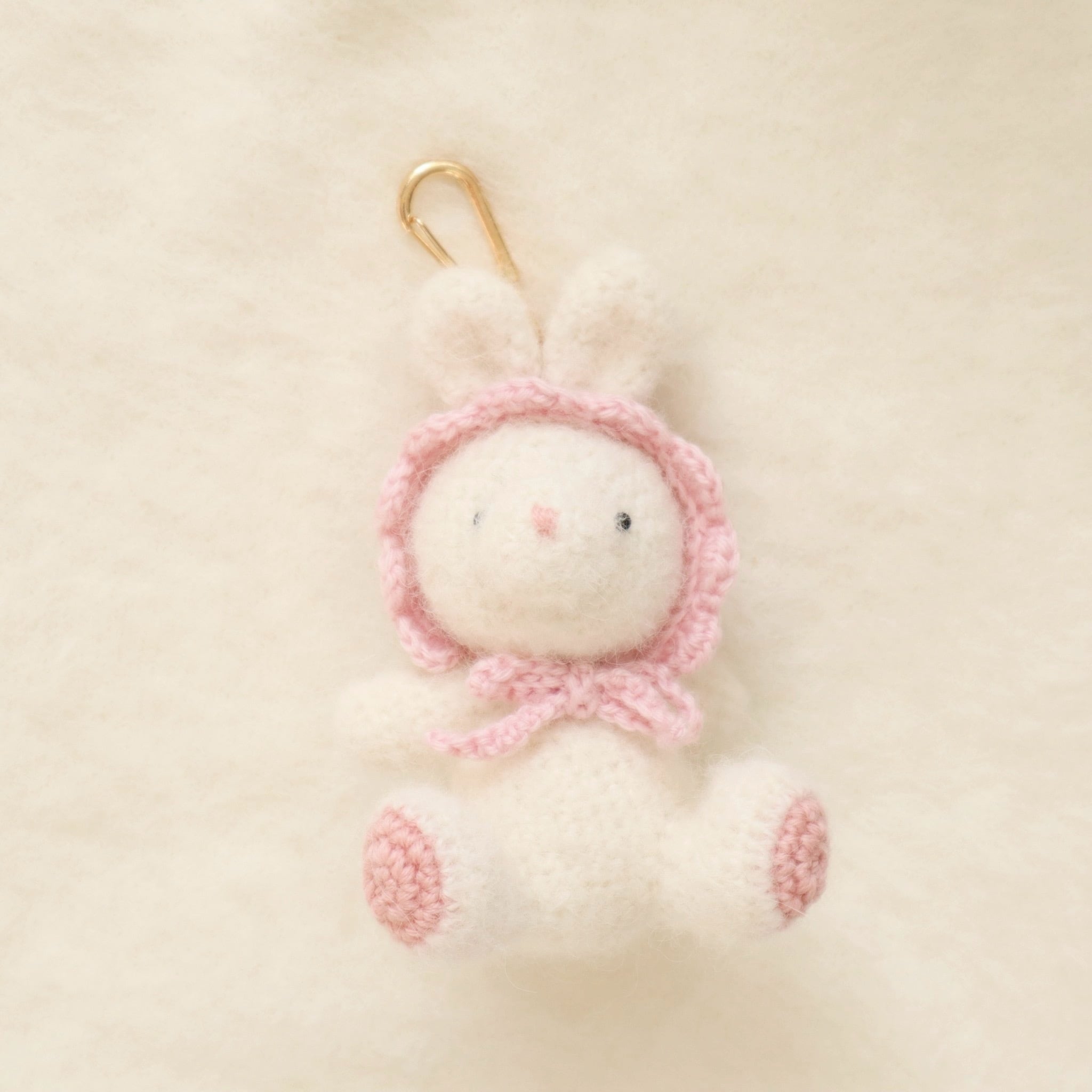 あみぐるみキーホルダー ボンネットで少しおめかしをした、色々な 場所につれていきやすいサイズ感の あみぐるみキーホルダーです。