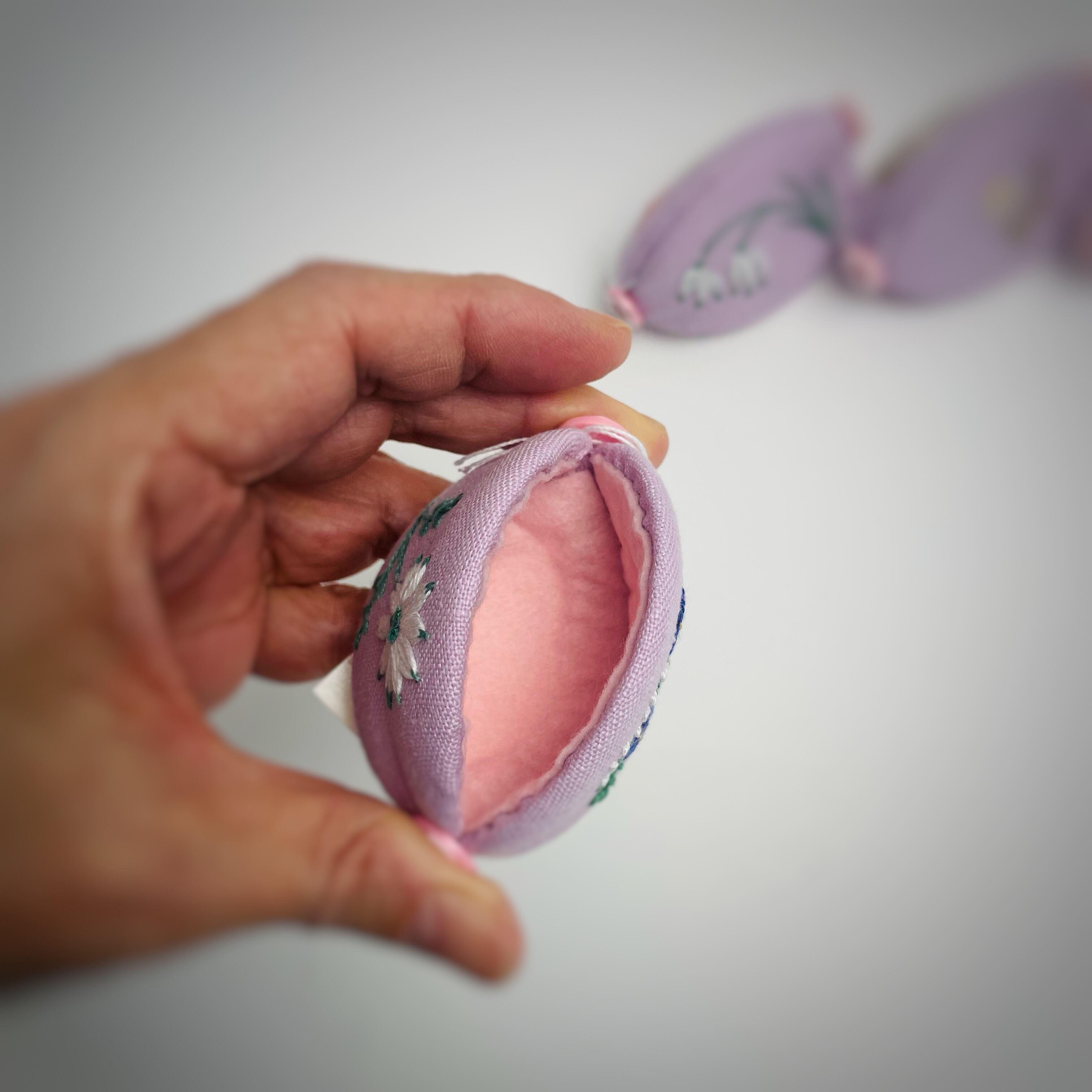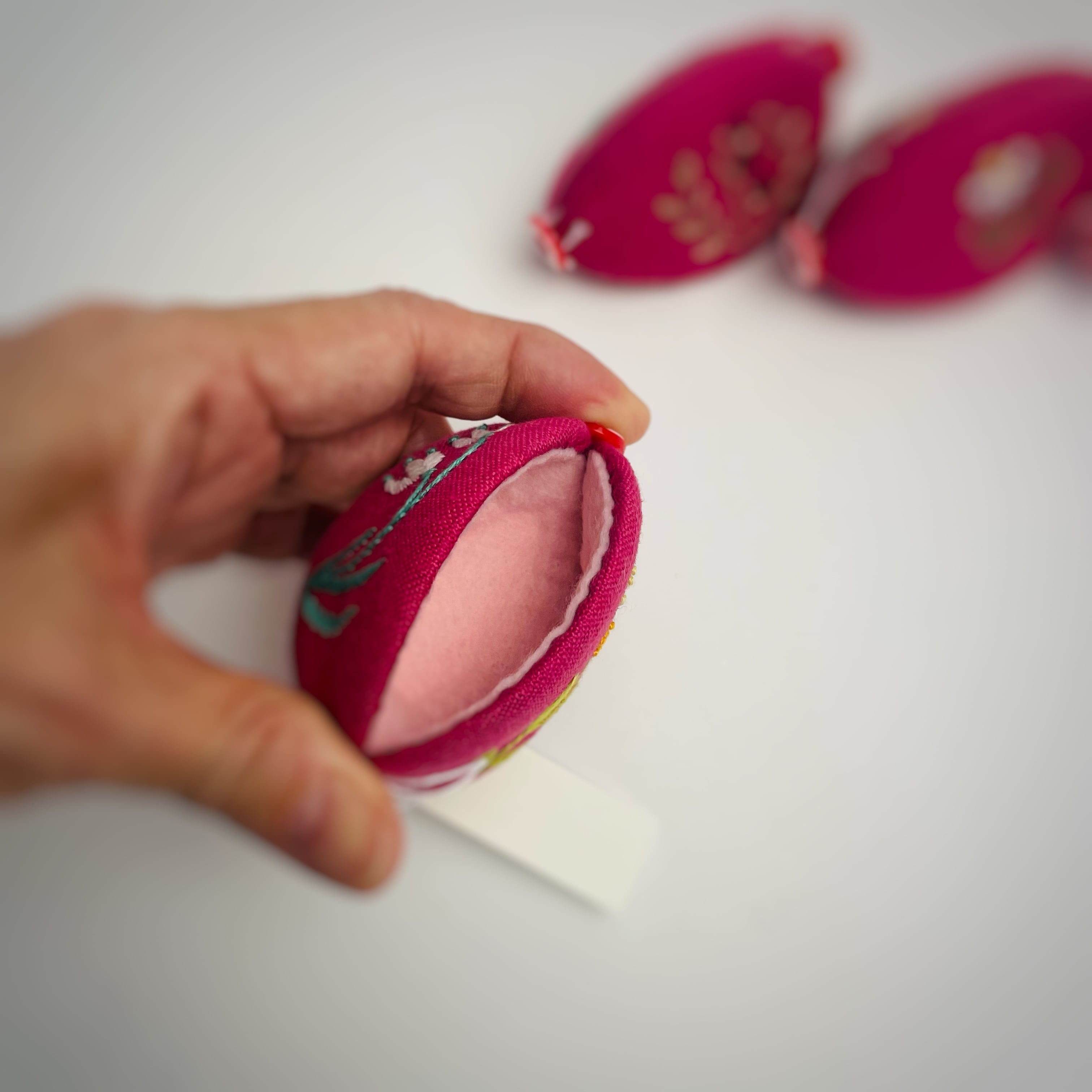 表と裏が種類の違う刺繍になっています。