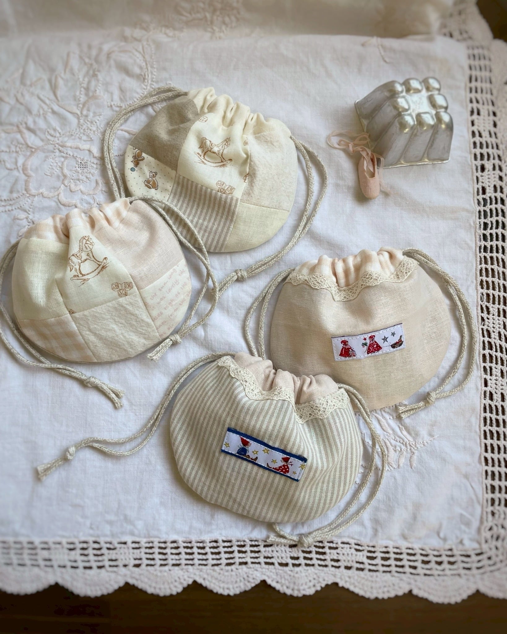 使いやすい大きさとコロンと丸い形がかわいい巾着ポーチ です。