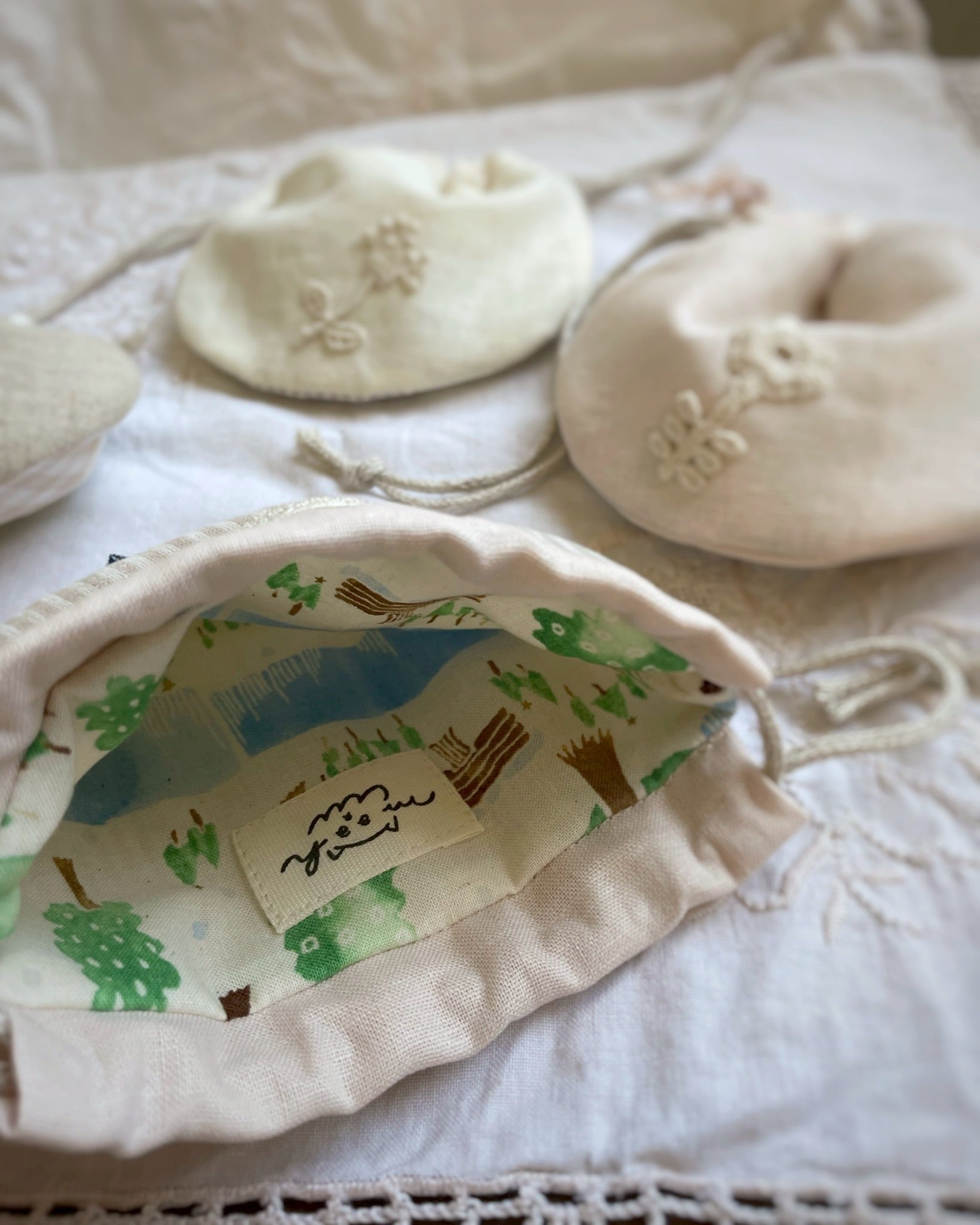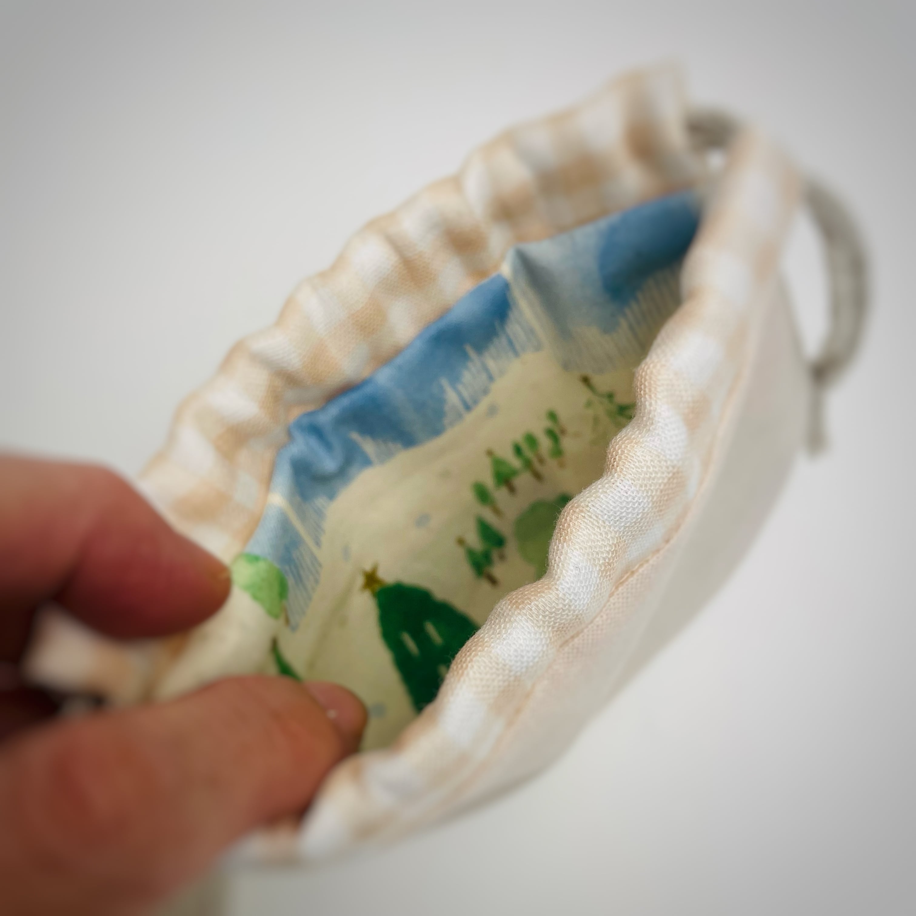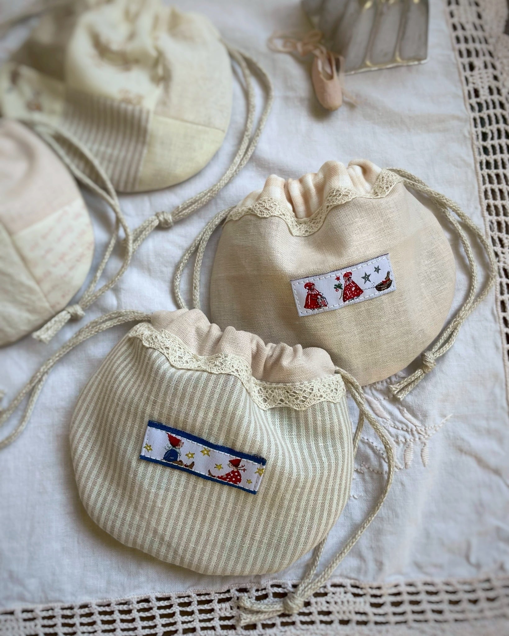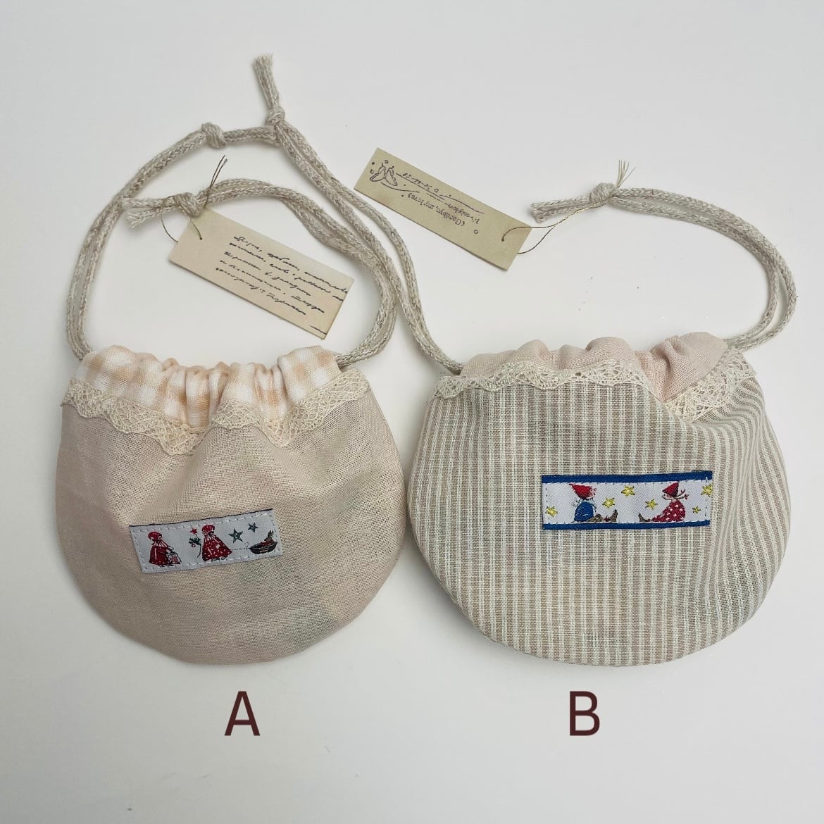 【冬の妖精さんまる巾着】 横約13㎝ 縦約11㎝