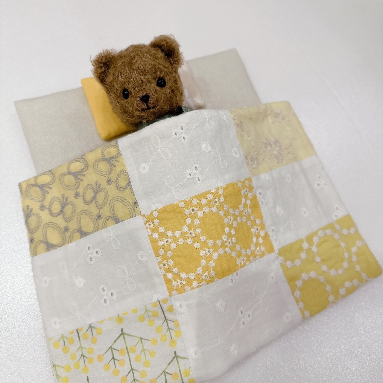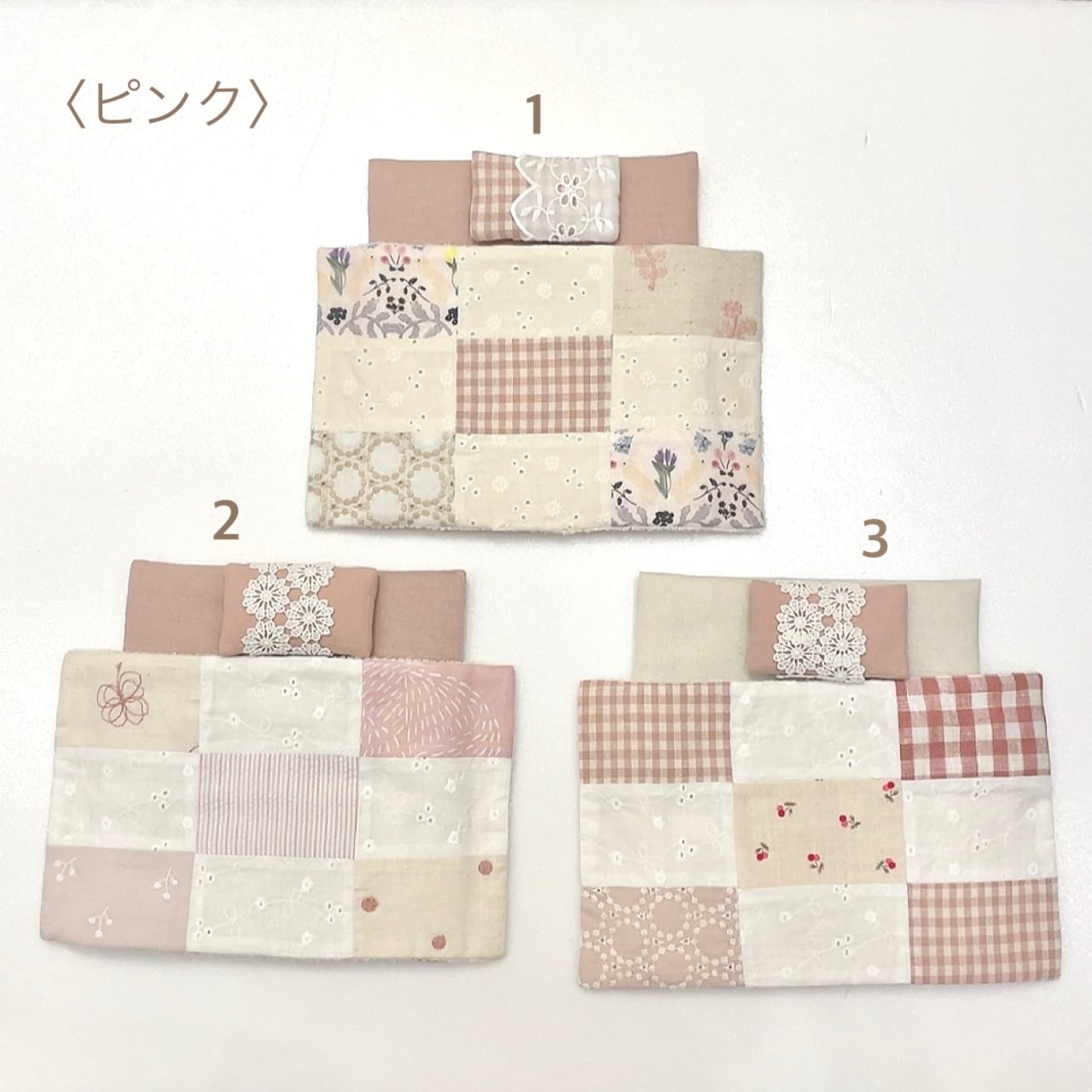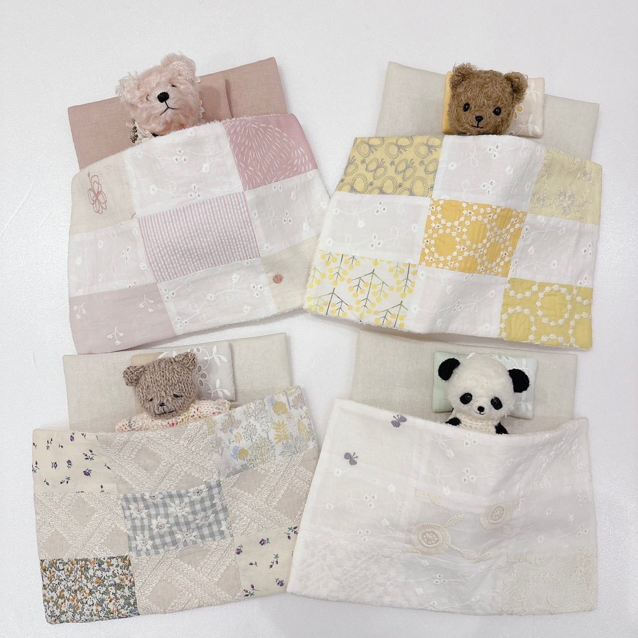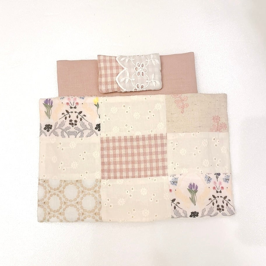お布団はひとつづつパッチワークしてあり、綿入りでふかふか♡
