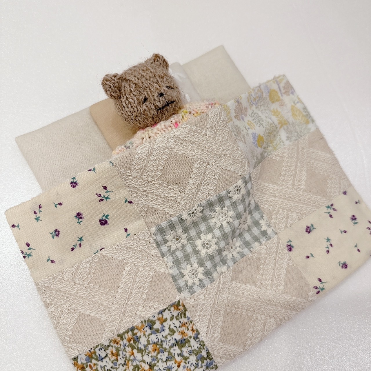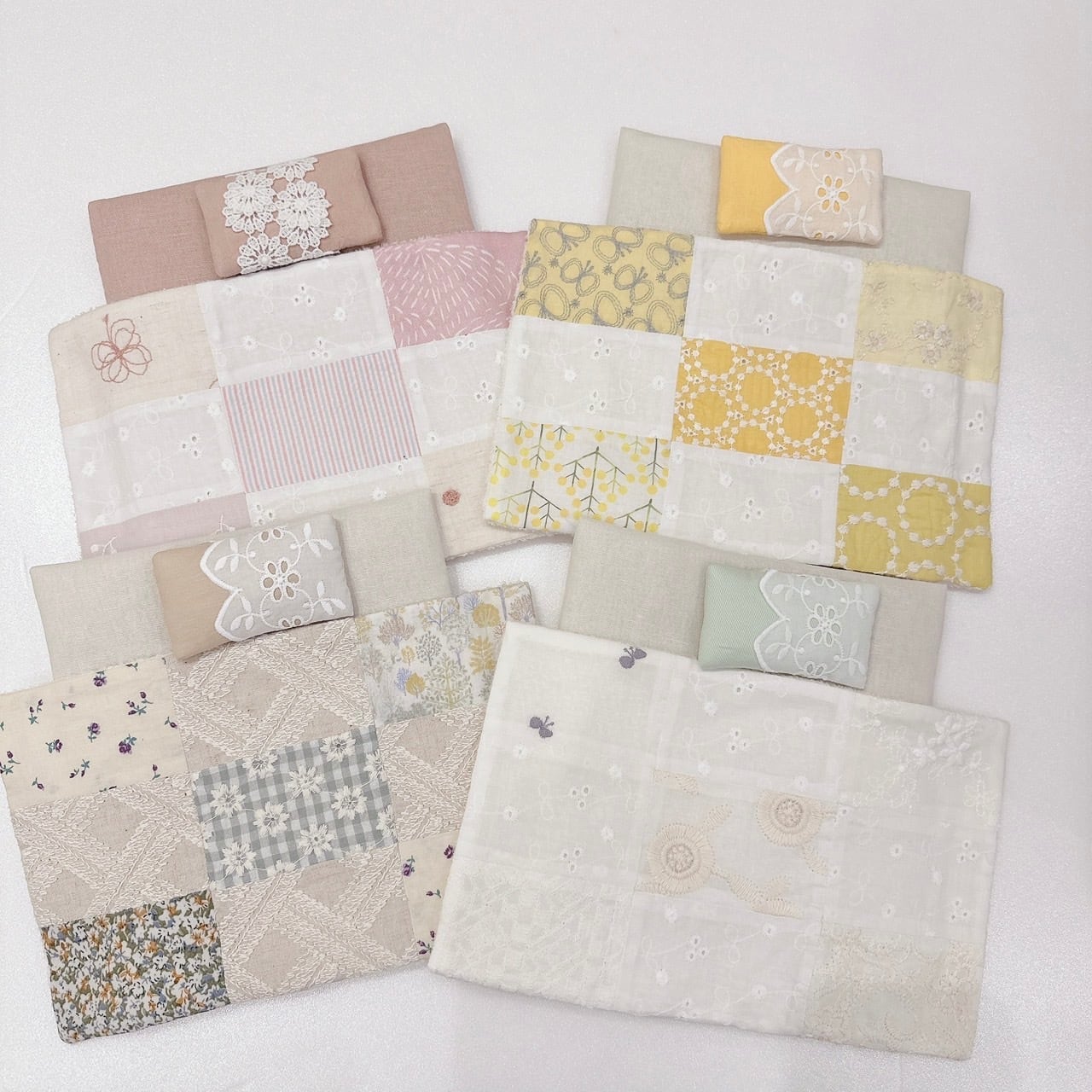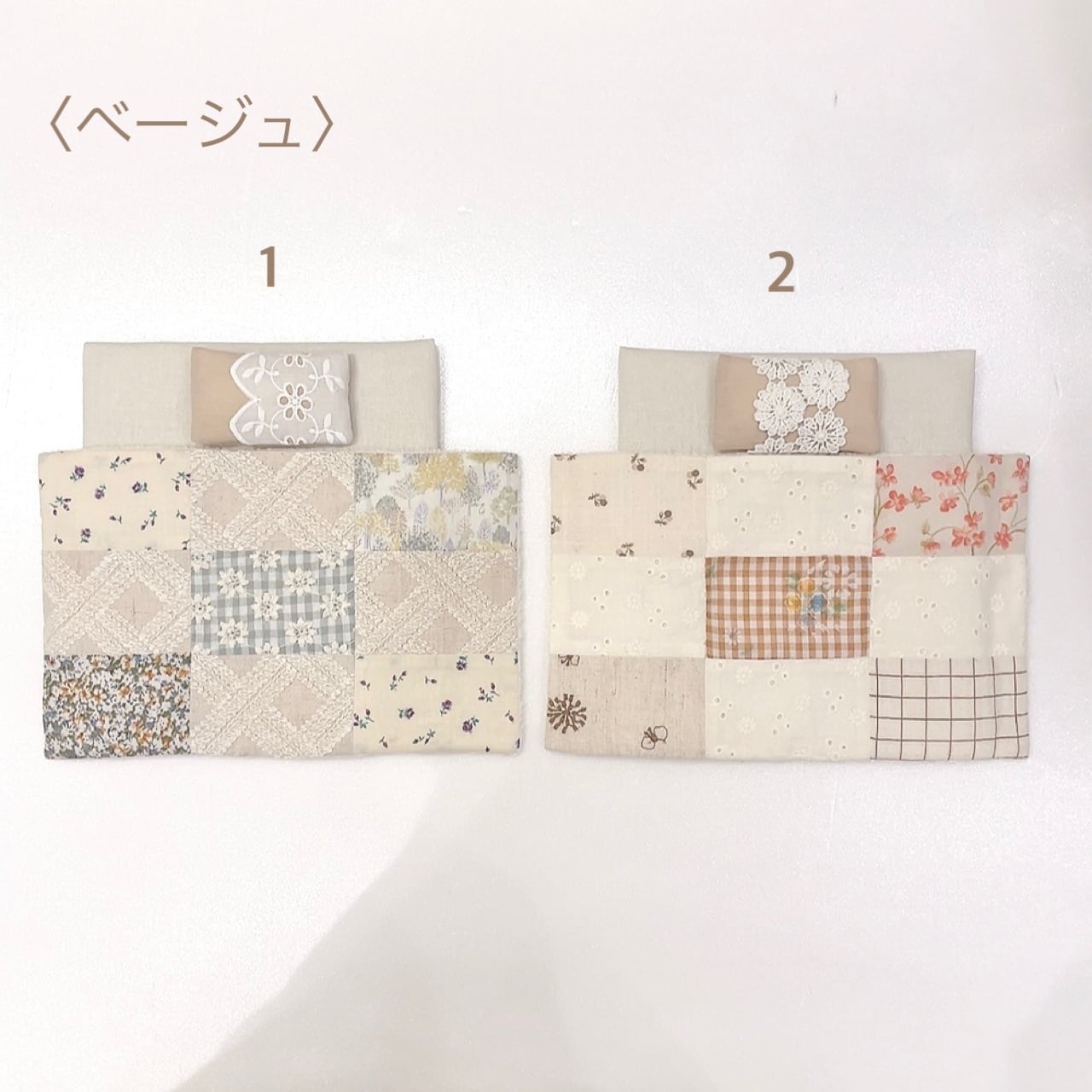 お布団はひとつづつパッチワークしてあり、綿入りでふかふか♡