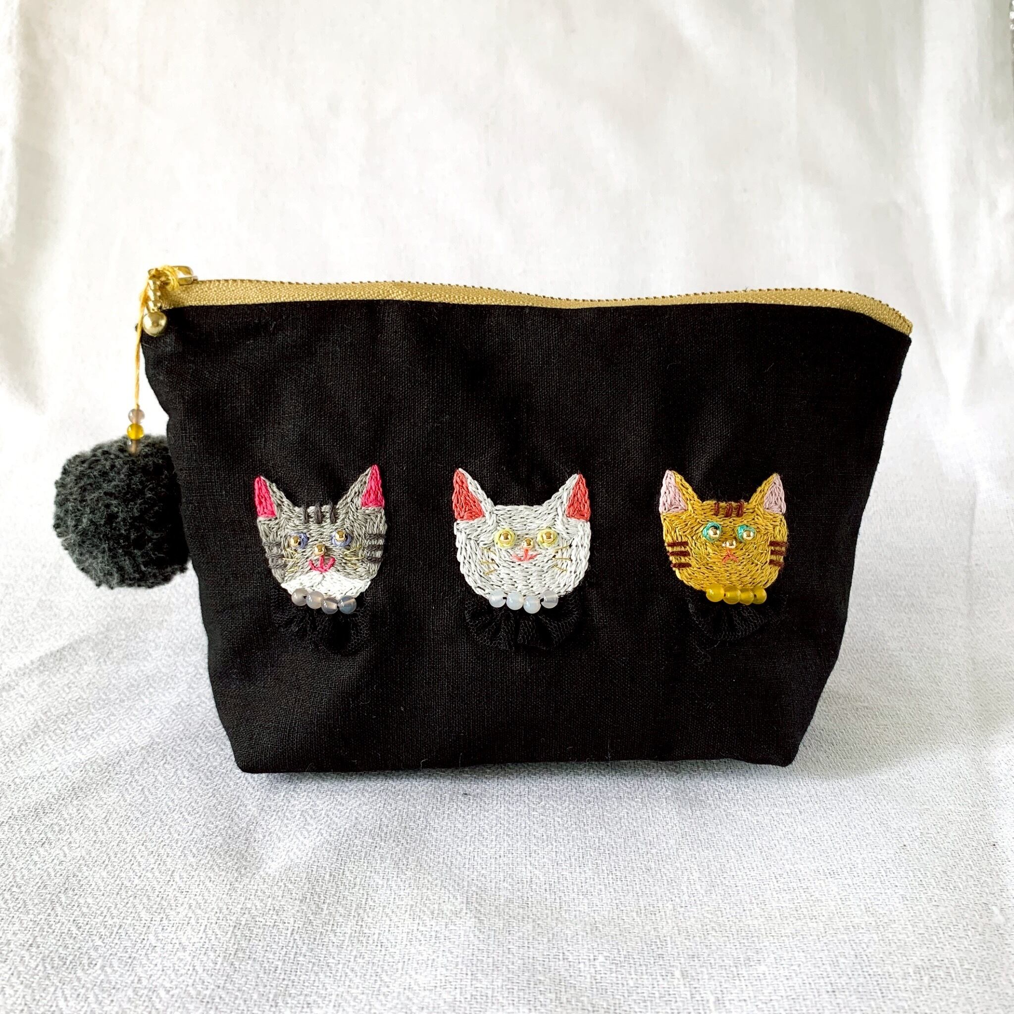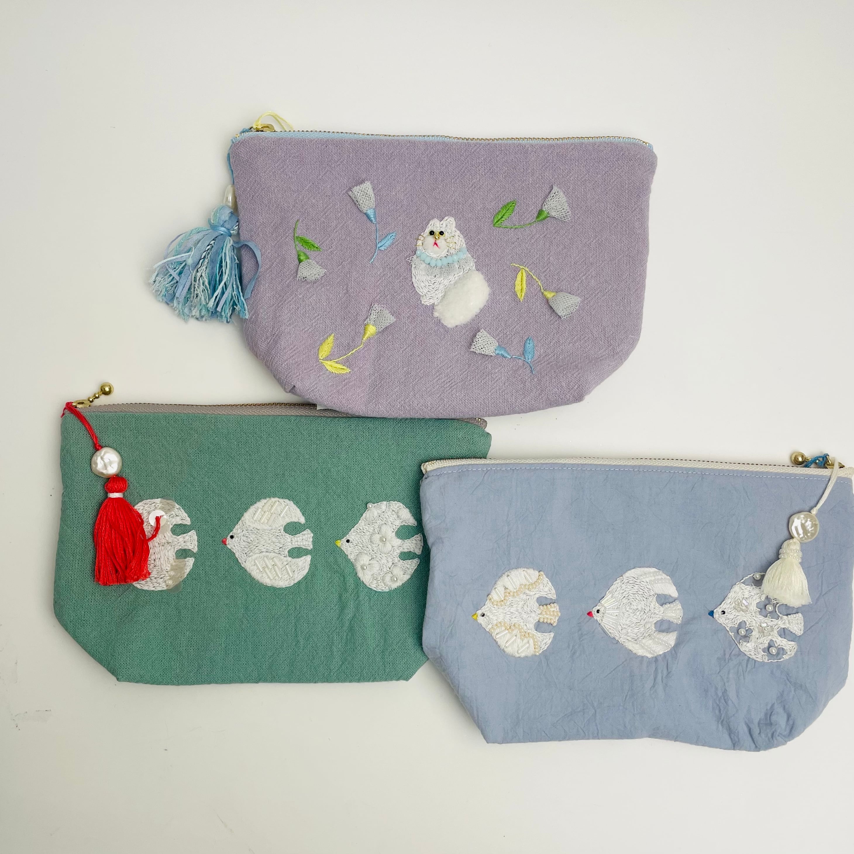 【ネコポーチ】 横約20㎝・縦約12㎝・底マチ約5.5㎝