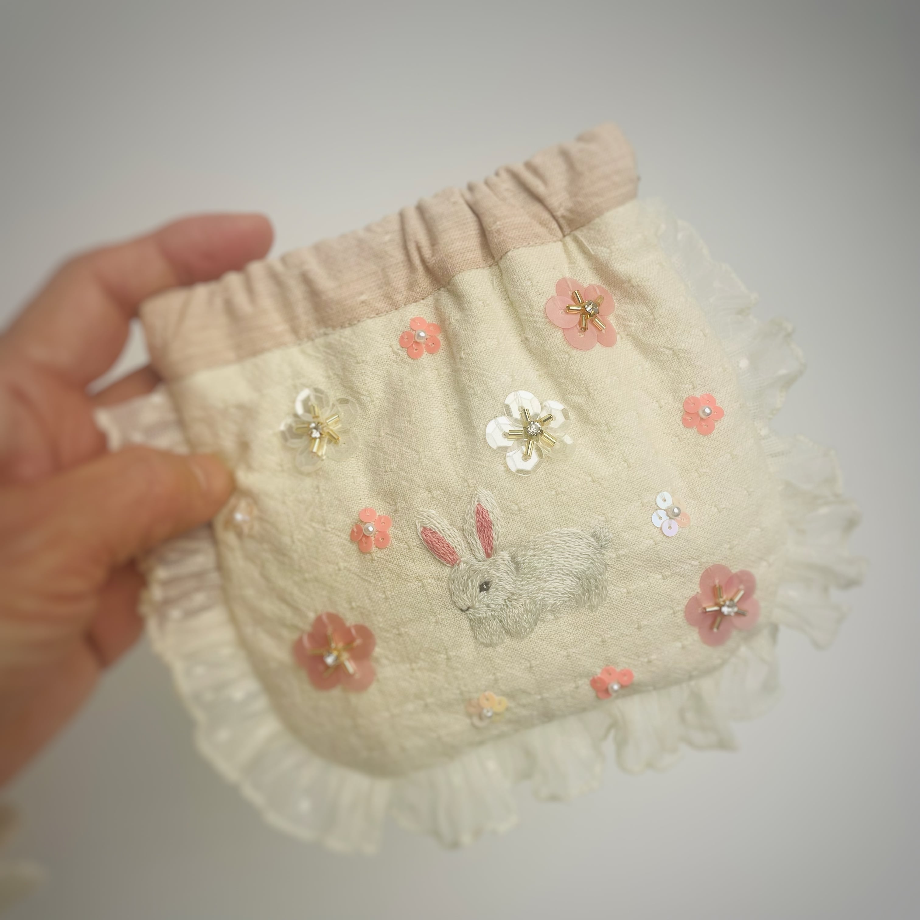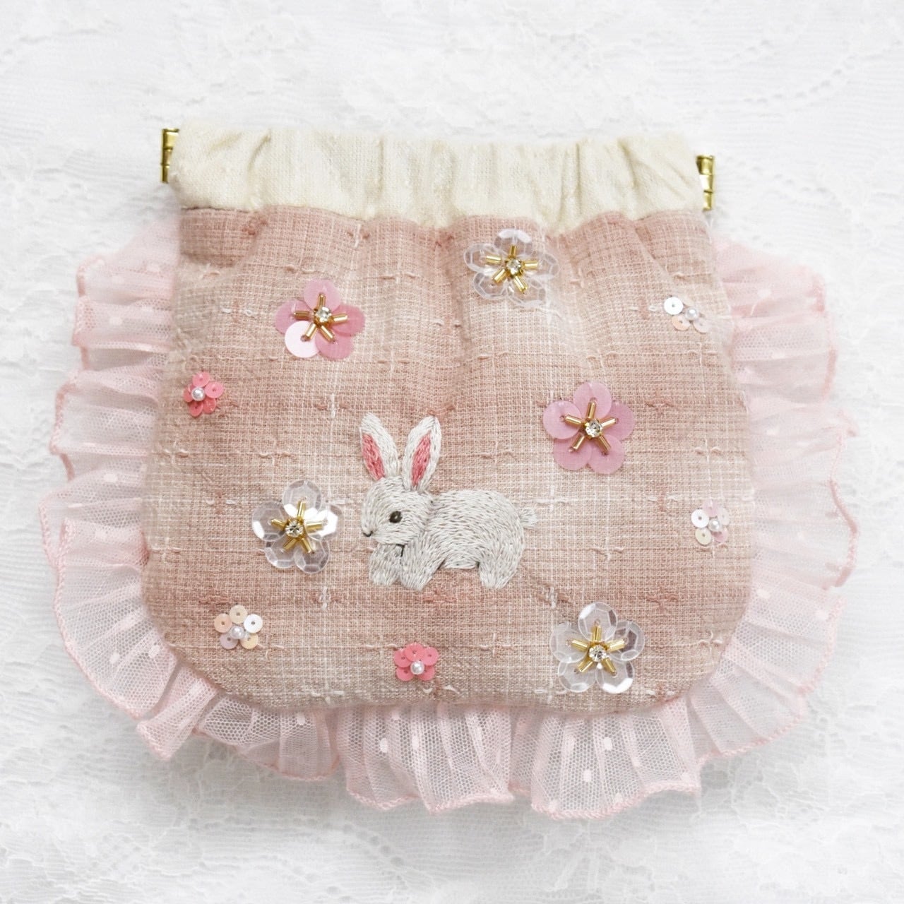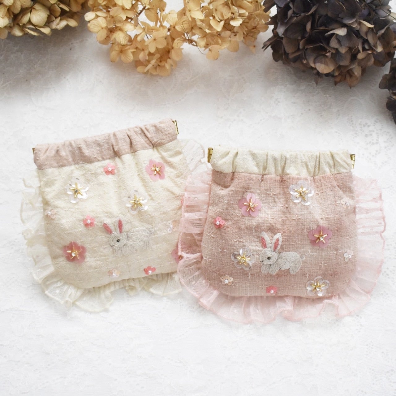 綴りの庭/うさぎと梅のお花のぱくぱくポーチ