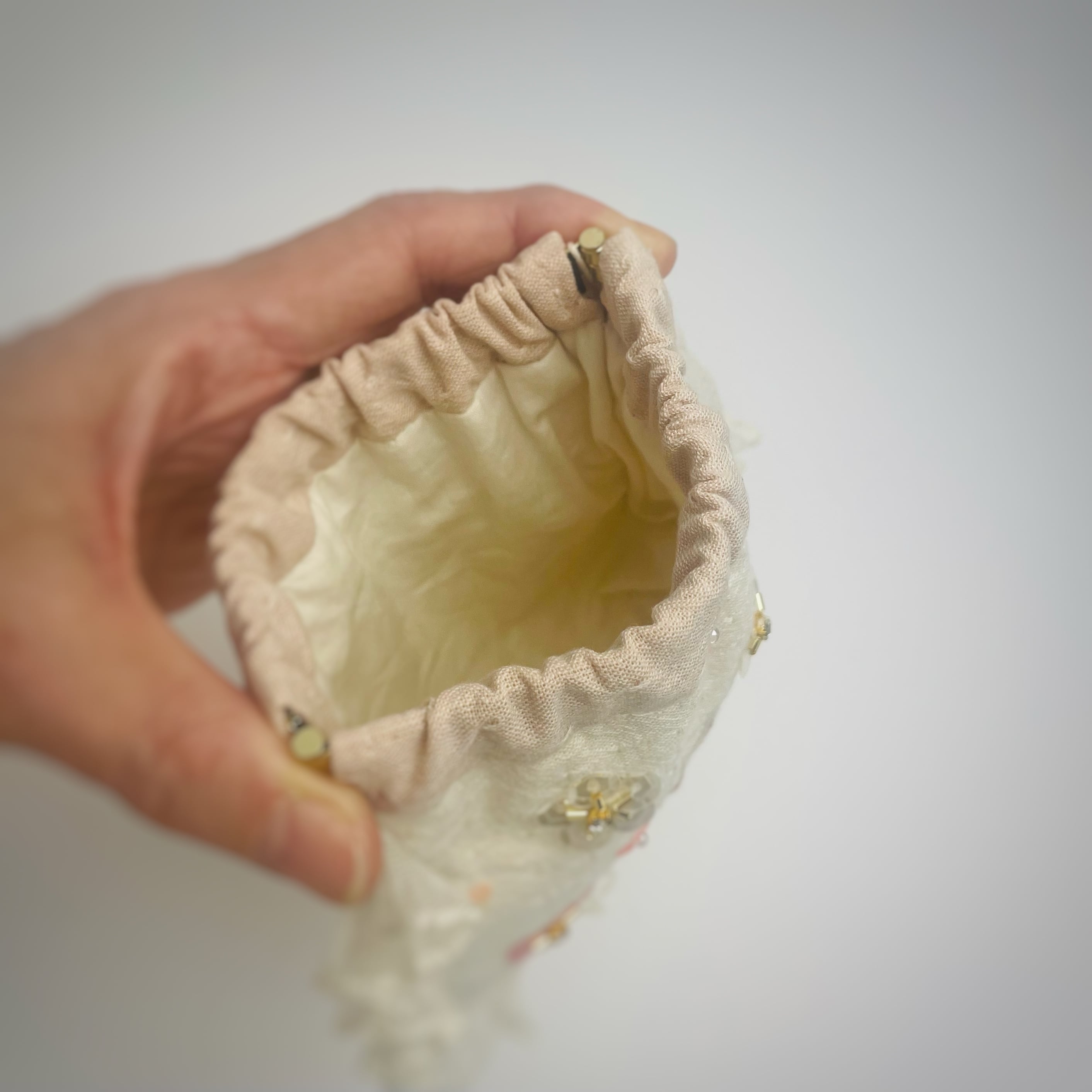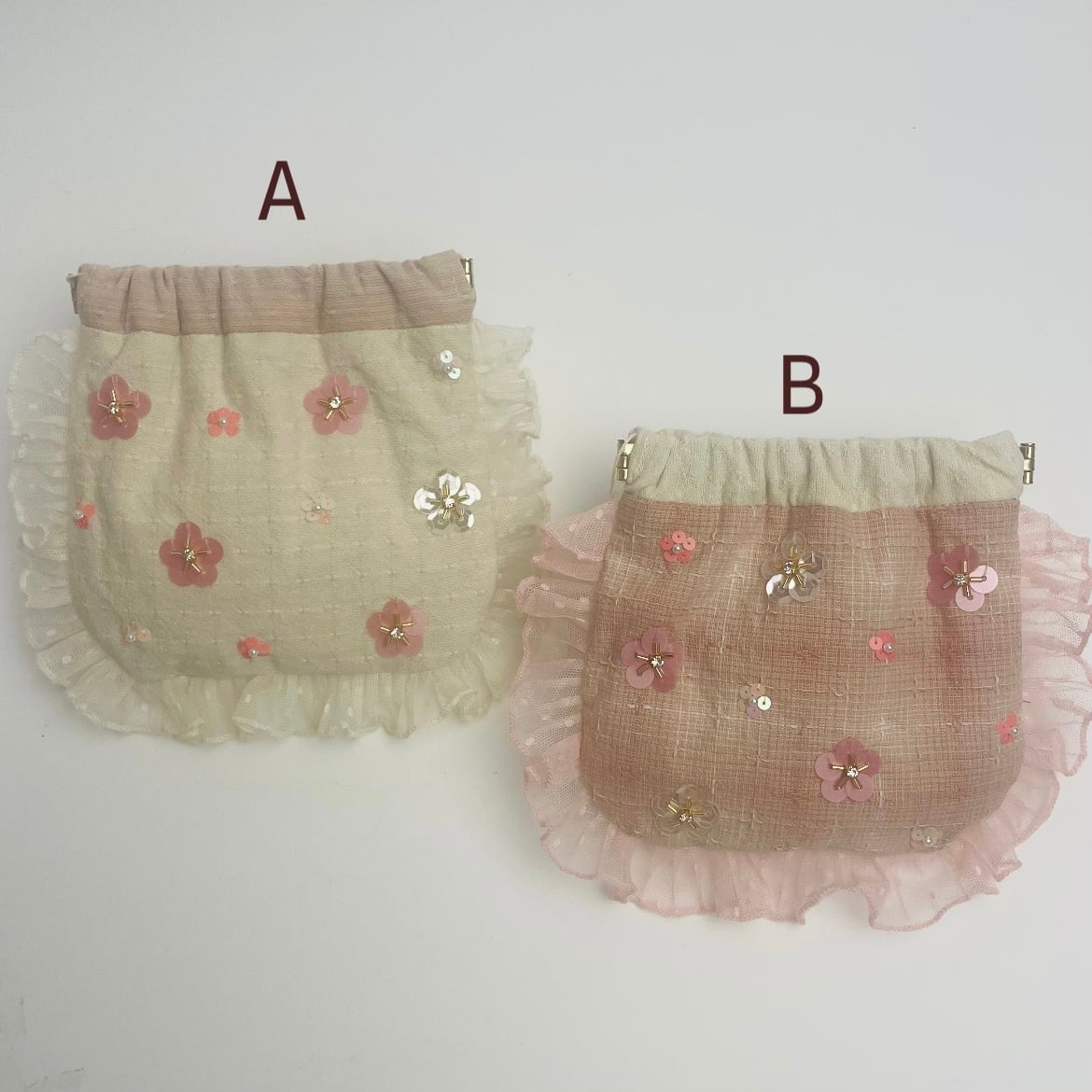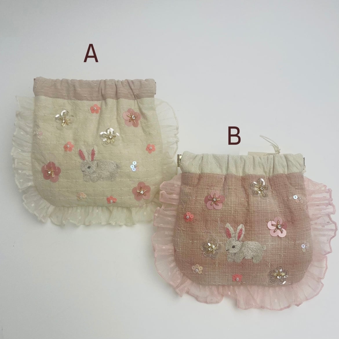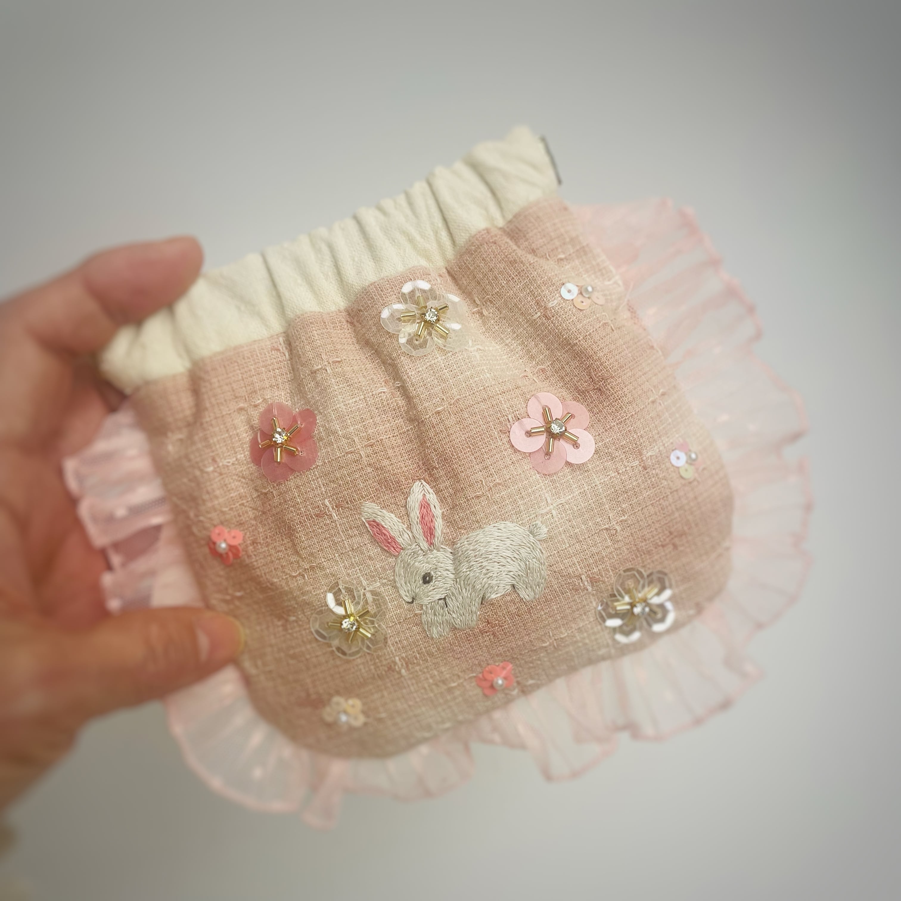 綴りの庭/うさぎと梅のお花のぱくぱくポーチ