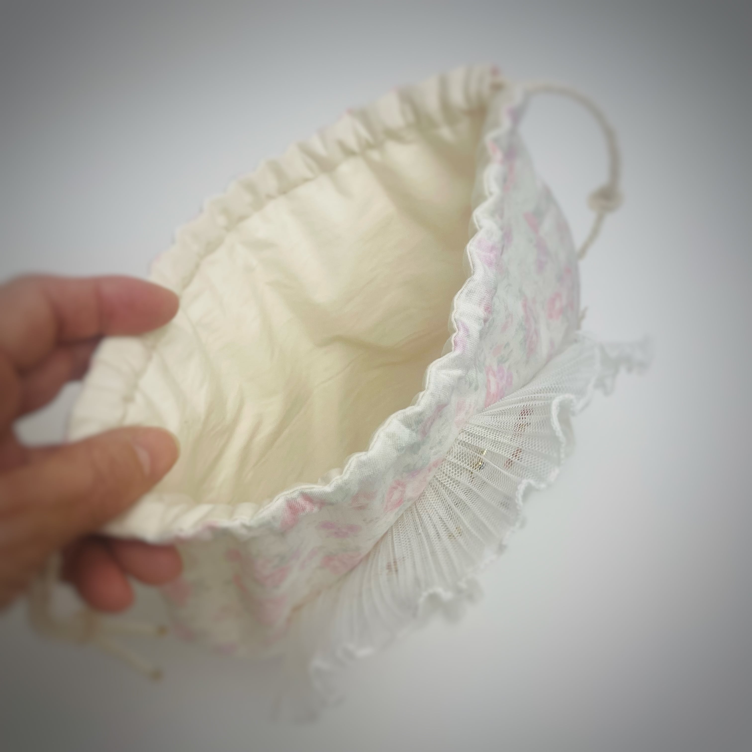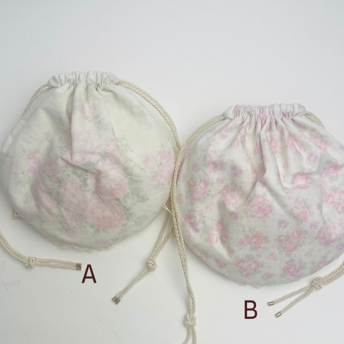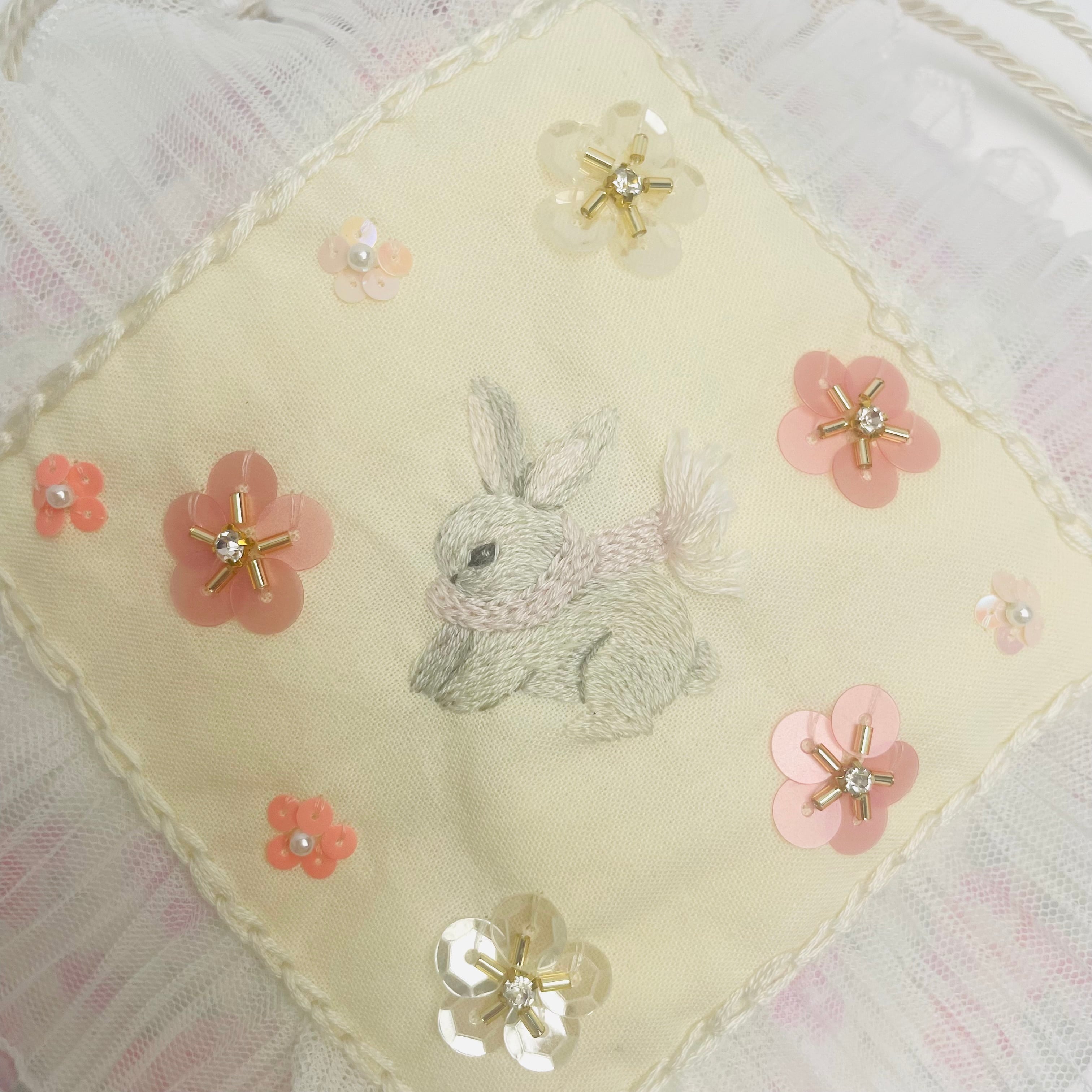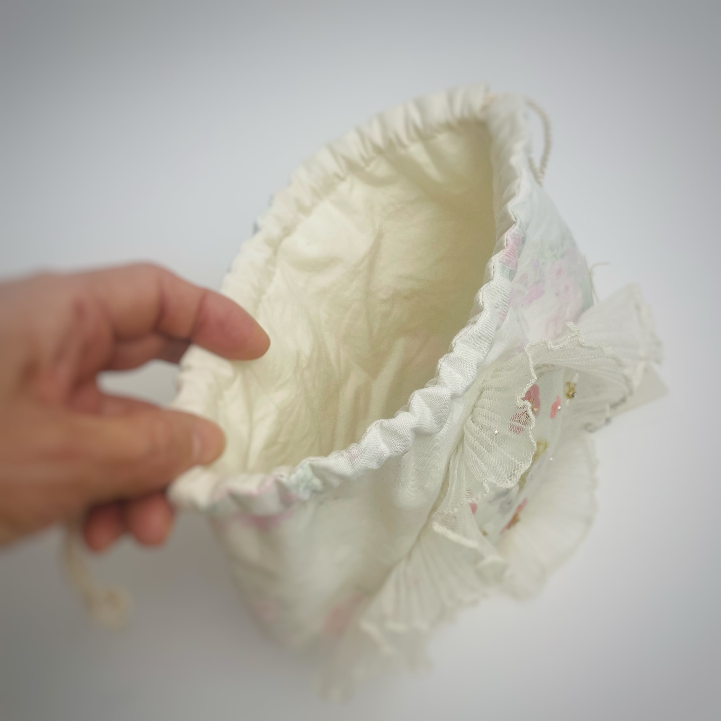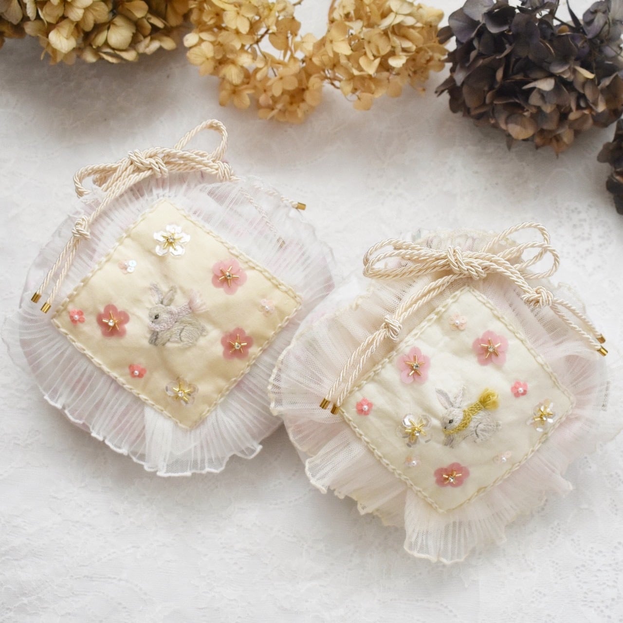 綴りの庭/うさぎと梅のお花のまんまる巾着