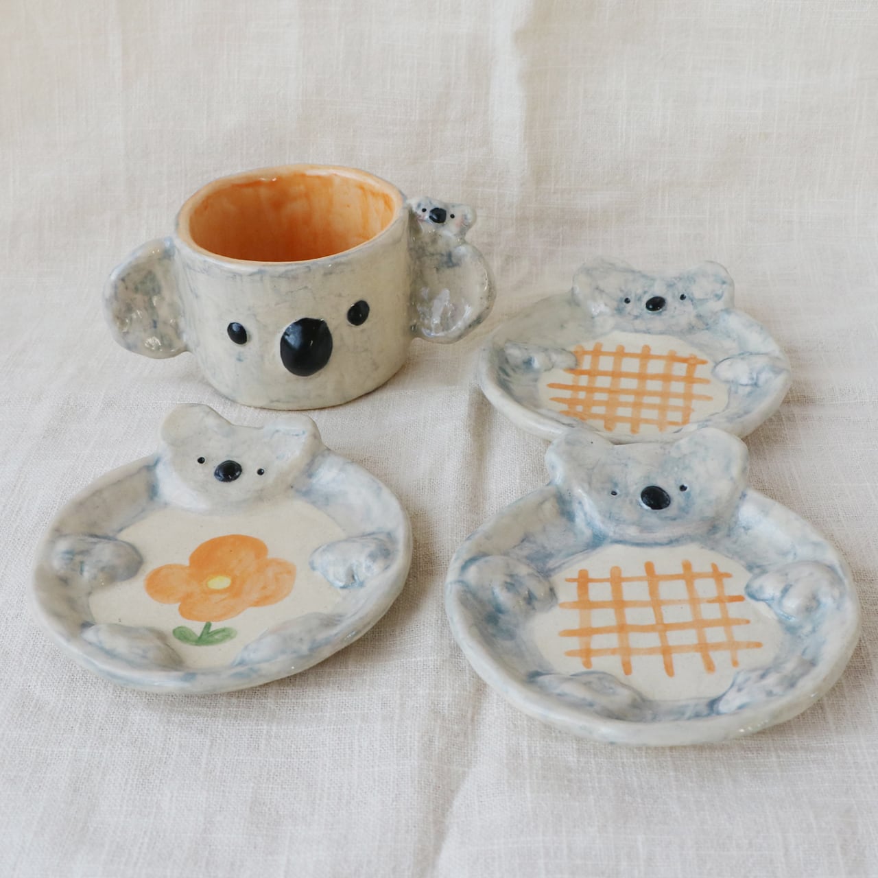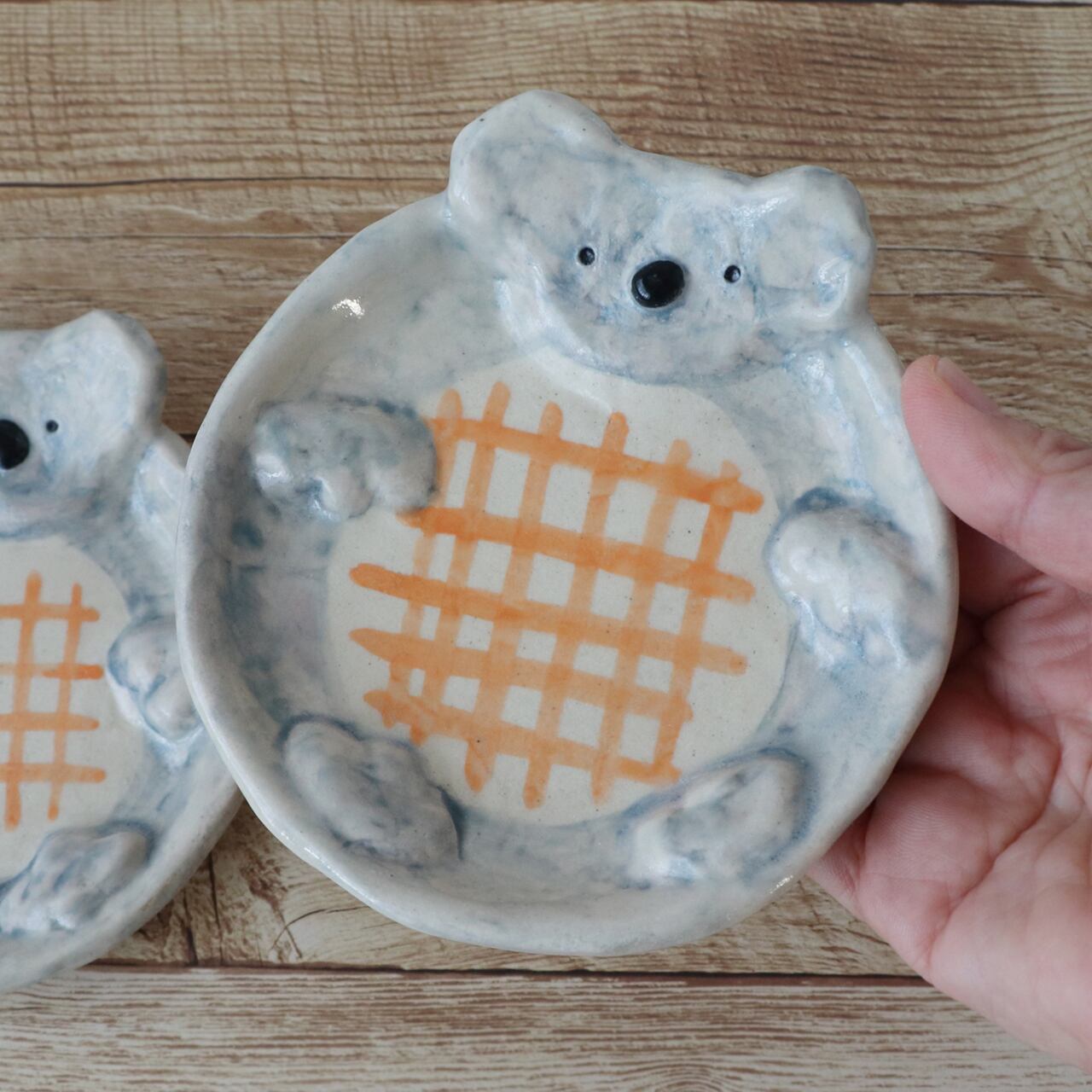 手びねりで一つひとつ制作したまんまるのお腹のコアラの小皿です。