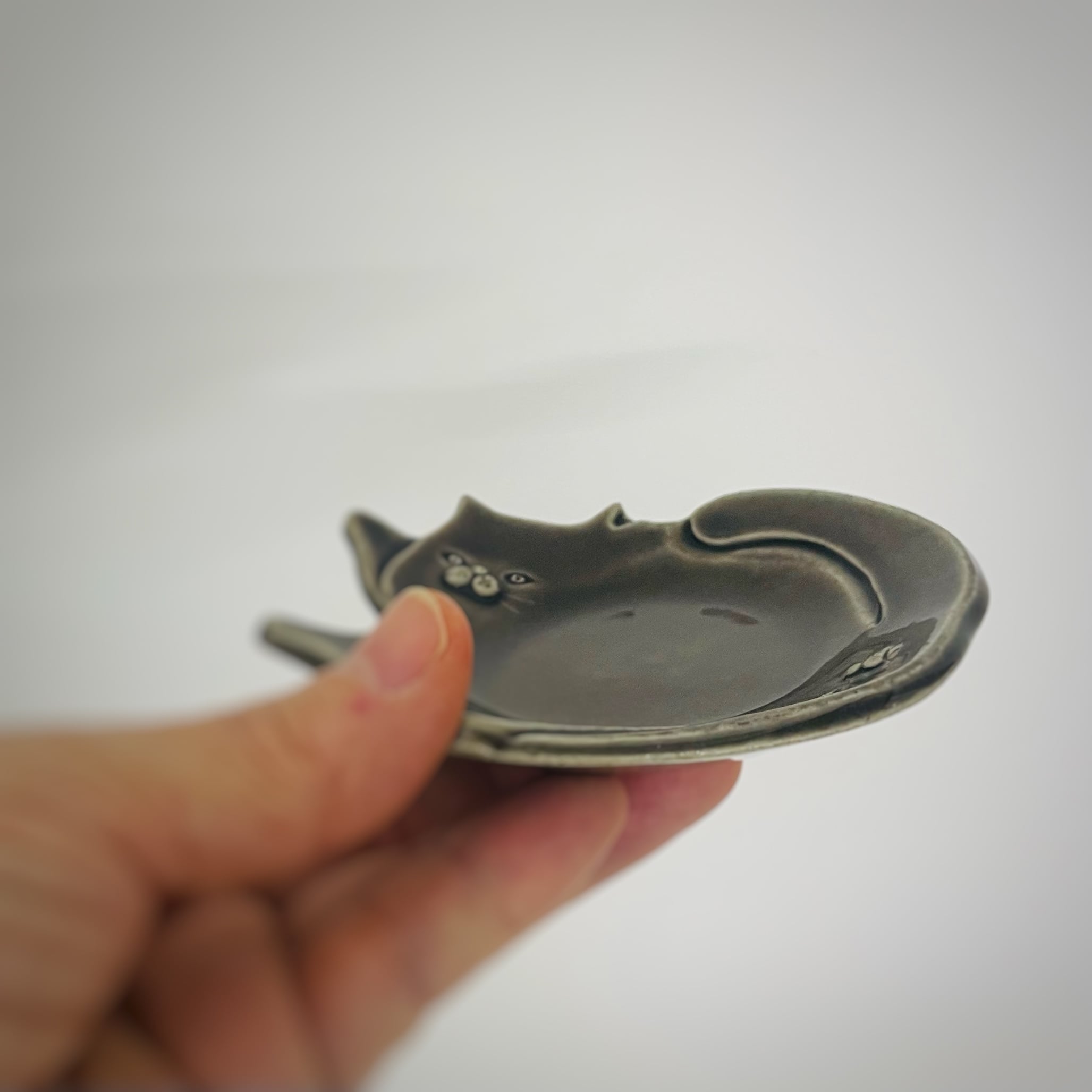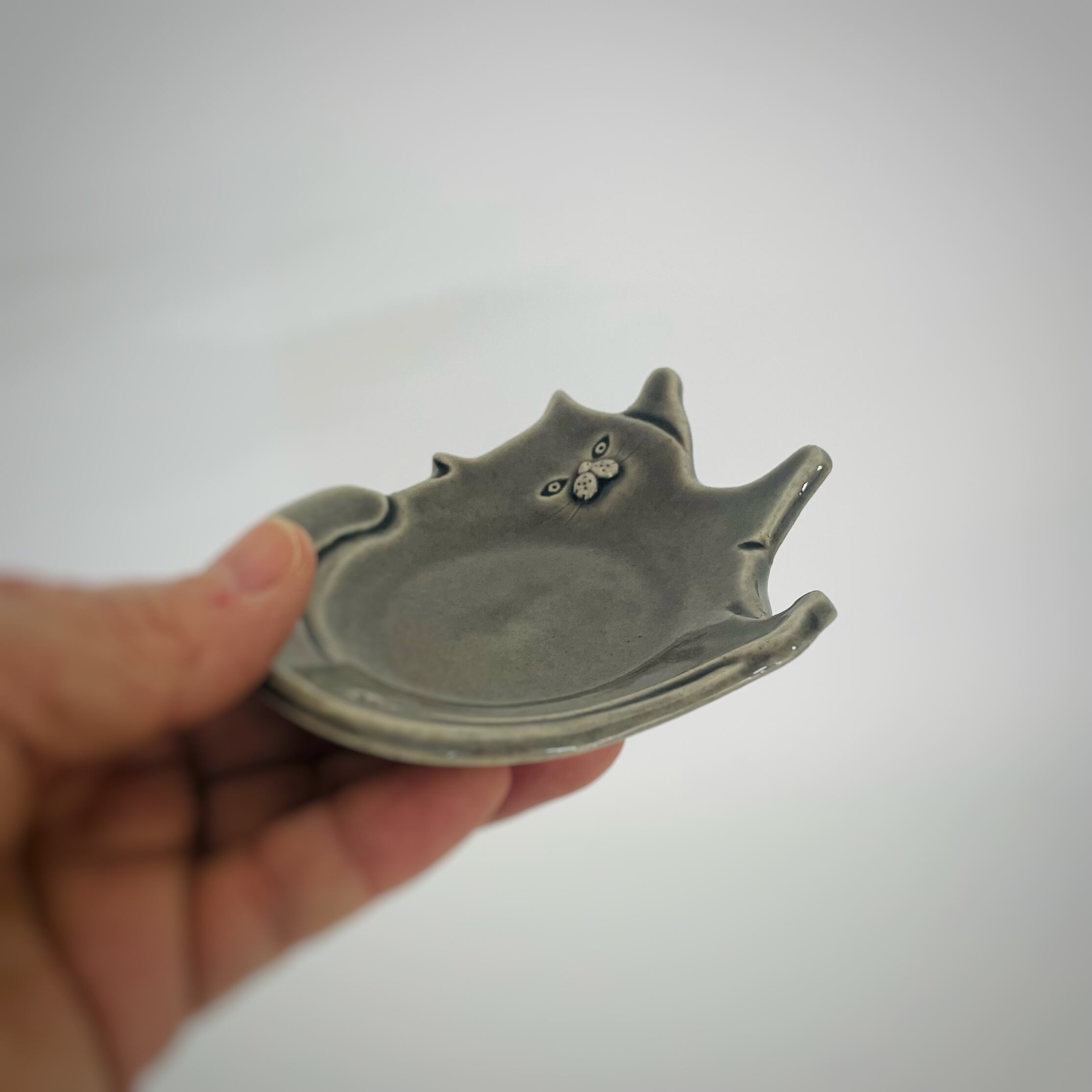 猫の器シリーズ 【豆皿ねそべり/LGY】横約10㎝・縦約8㎝