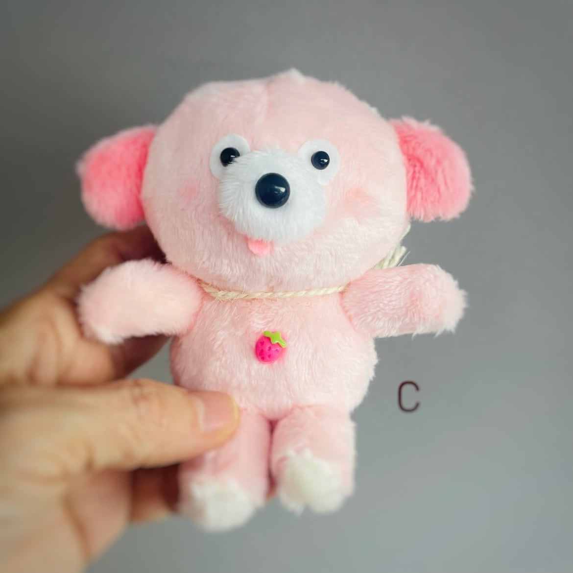 やさしい色の体に、おなかの いちごがポイントです。