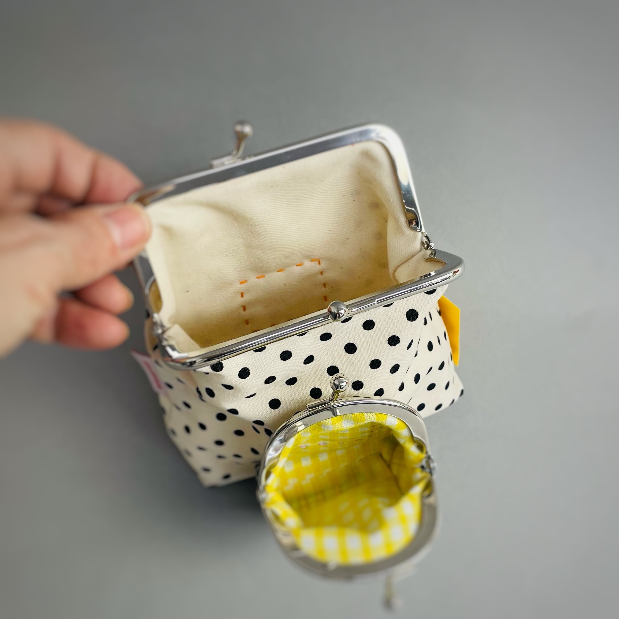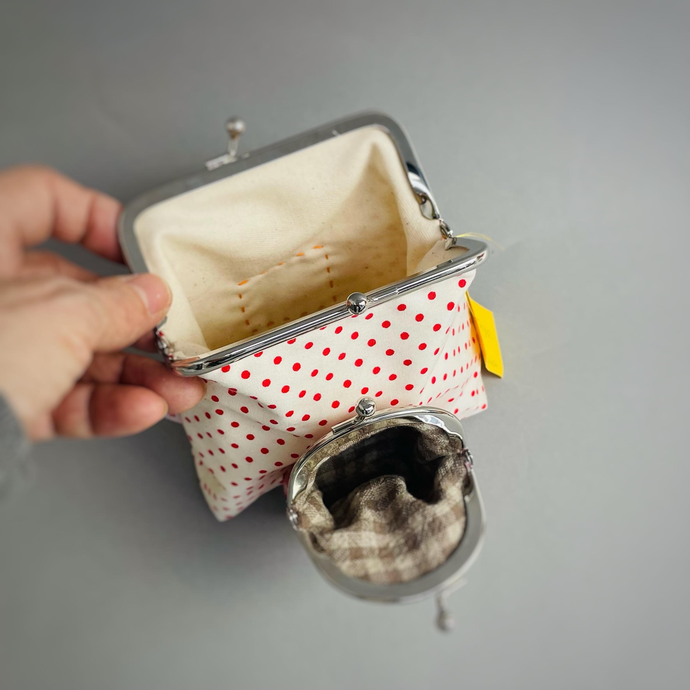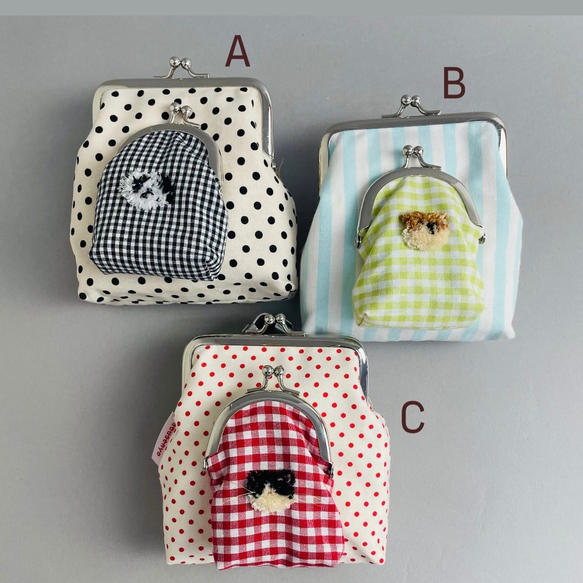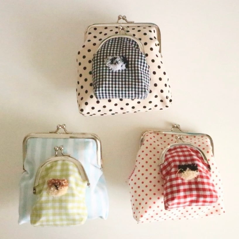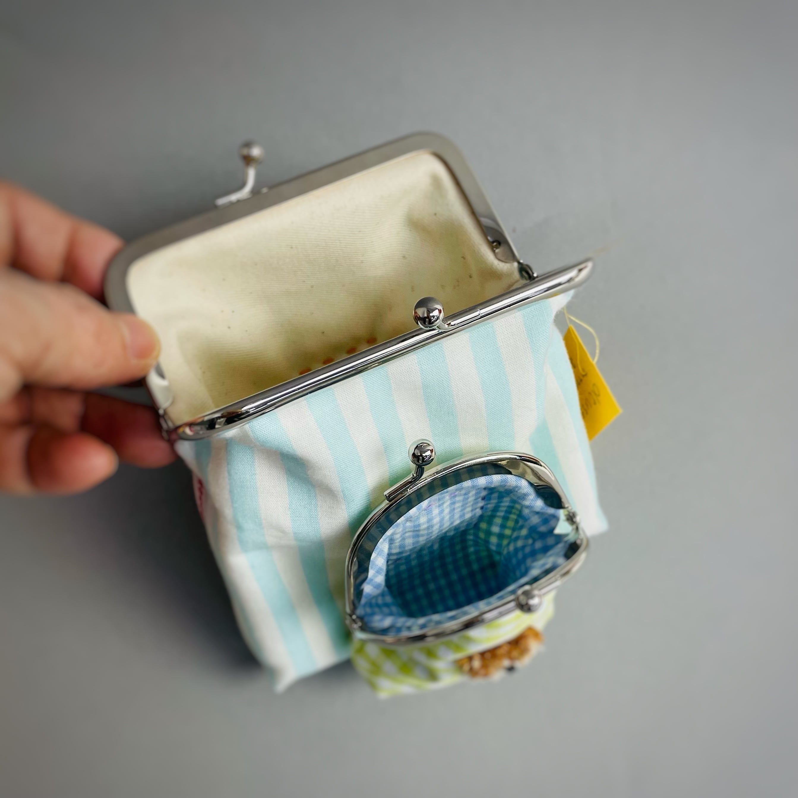 たっぷり入るがま口にさらに収納が二つ付いた便利なポーチ♡