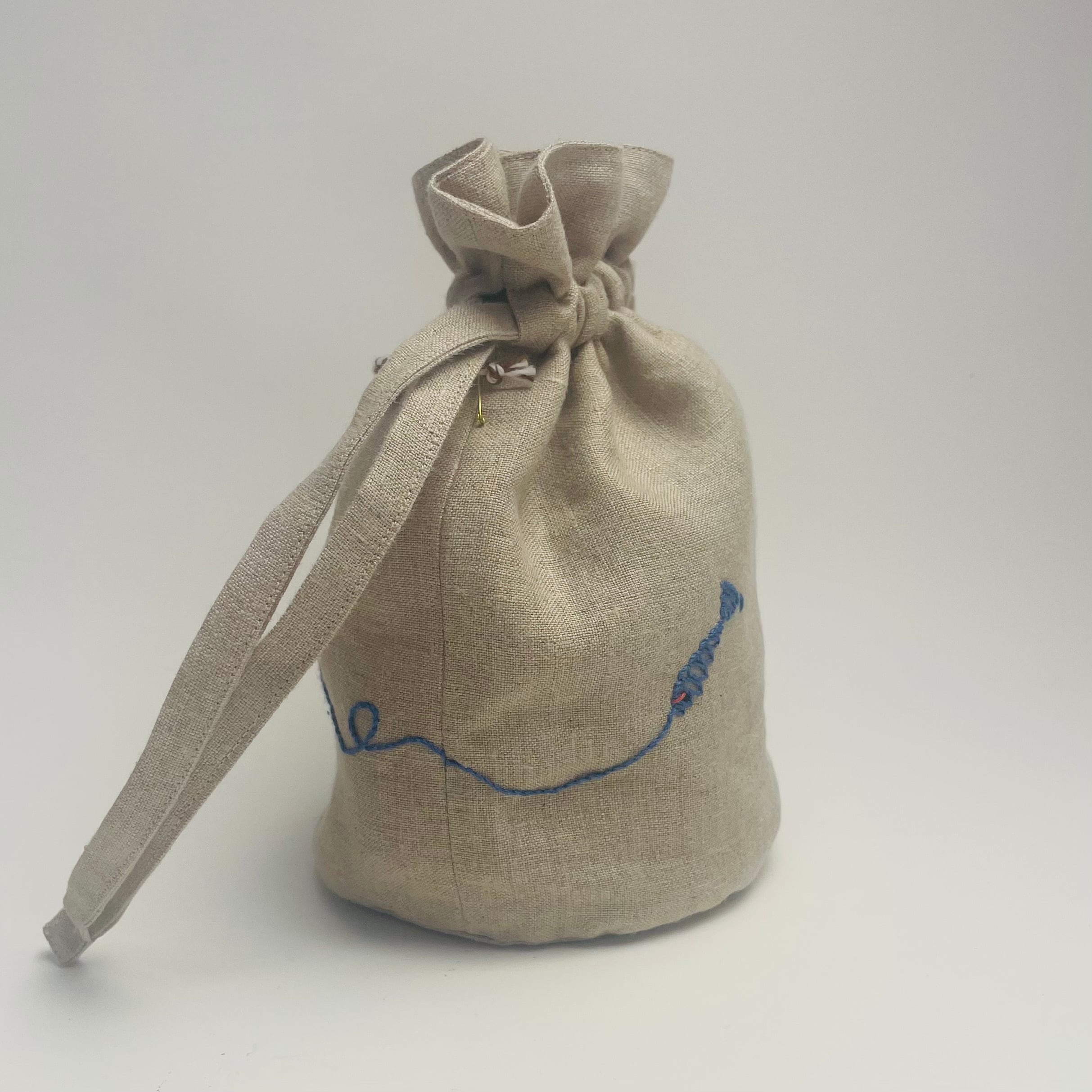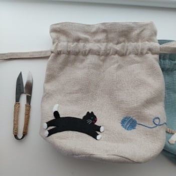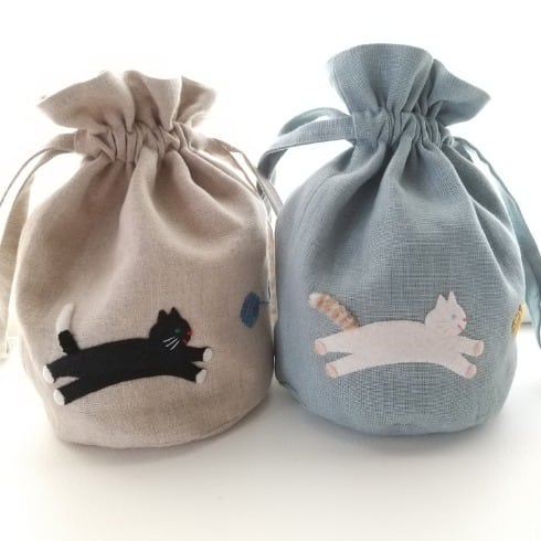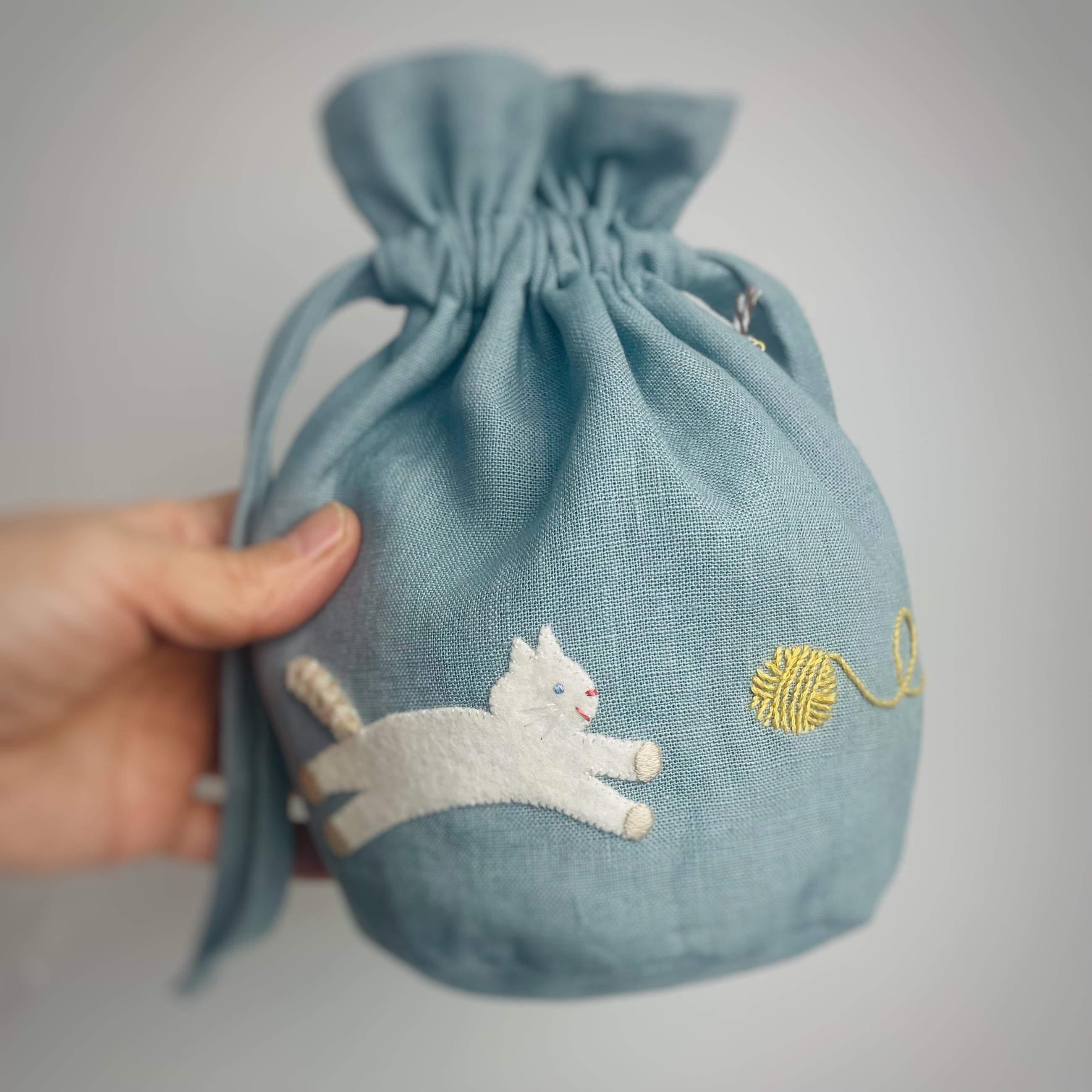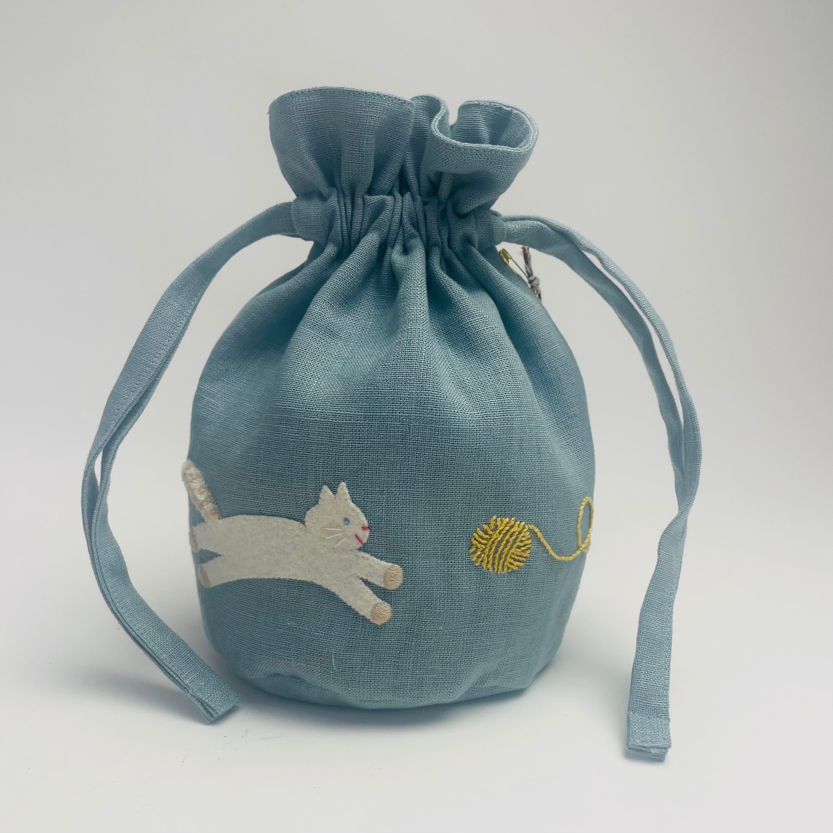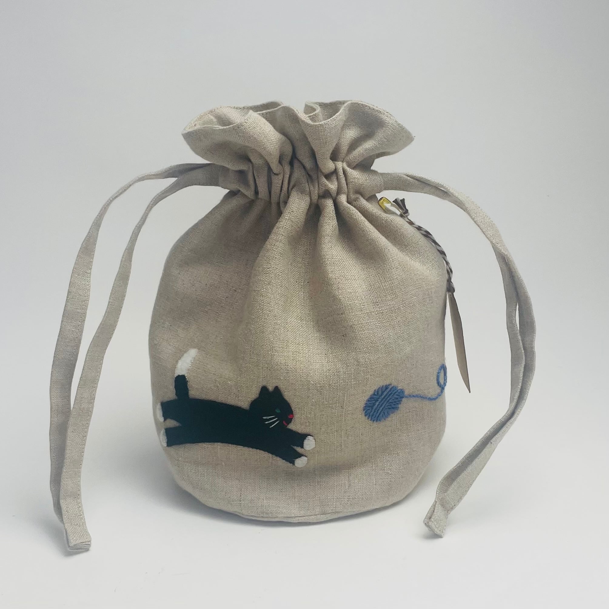 petite aiguille/ねこと毛糸玉 丸底巾着