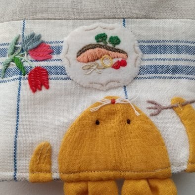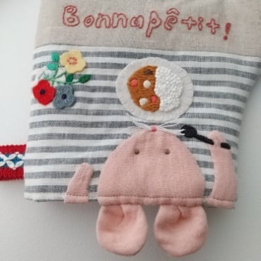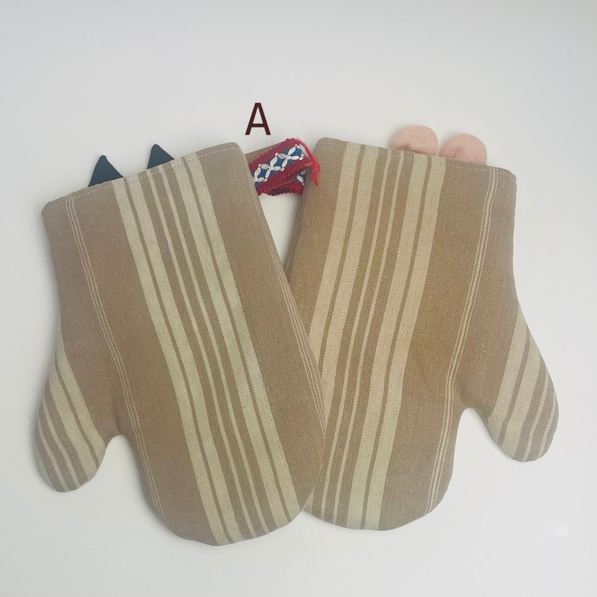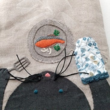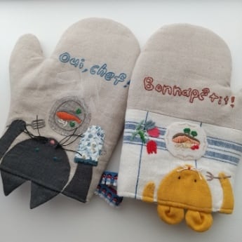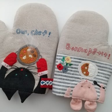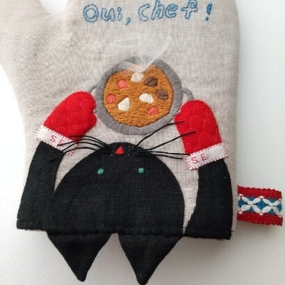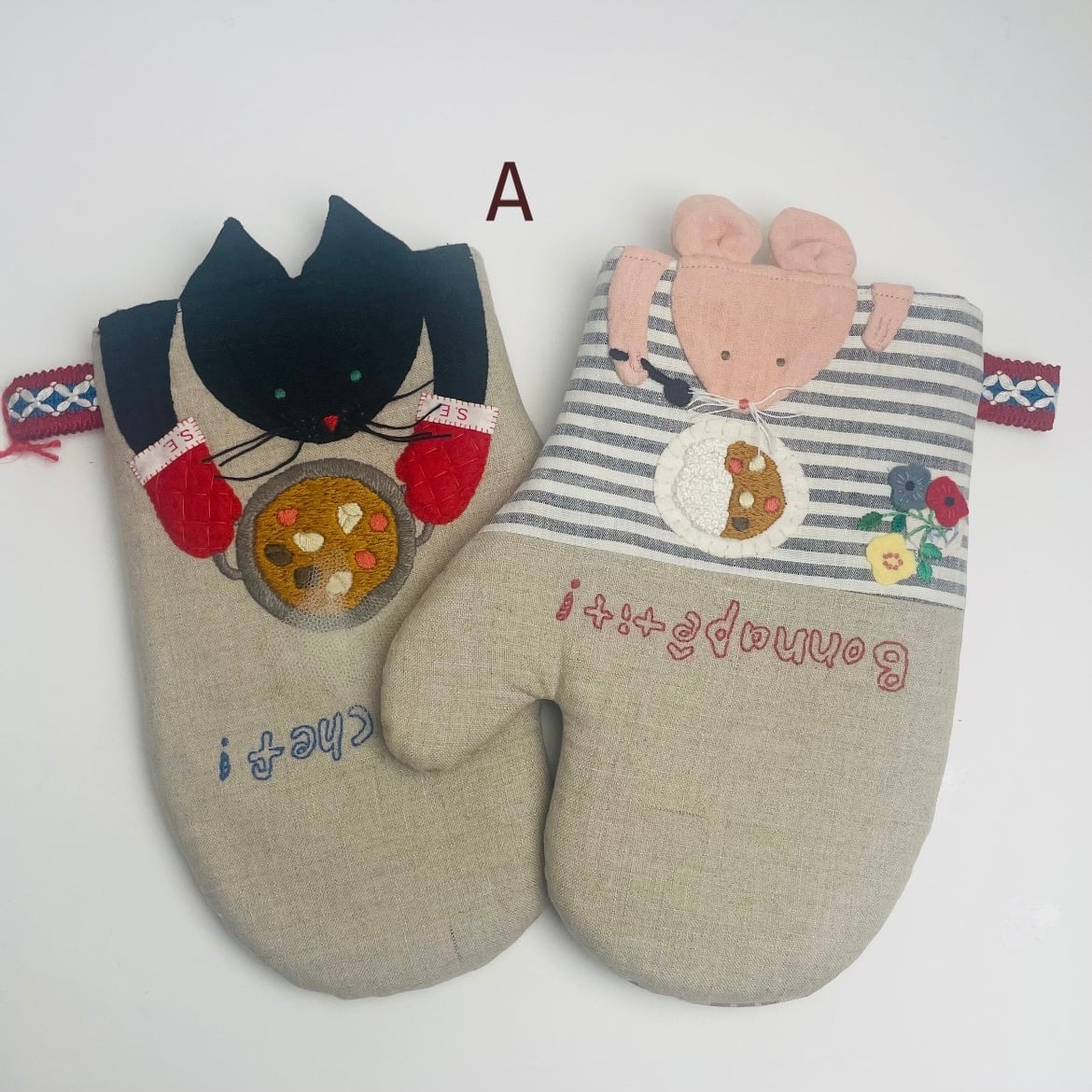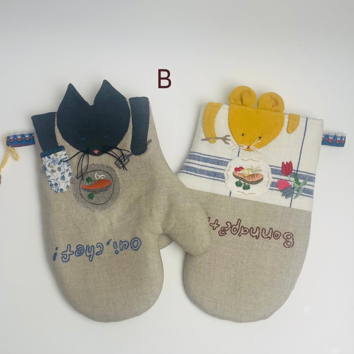 猫がシェフねずみがお客様の 楽しいゆかいなミトンです。