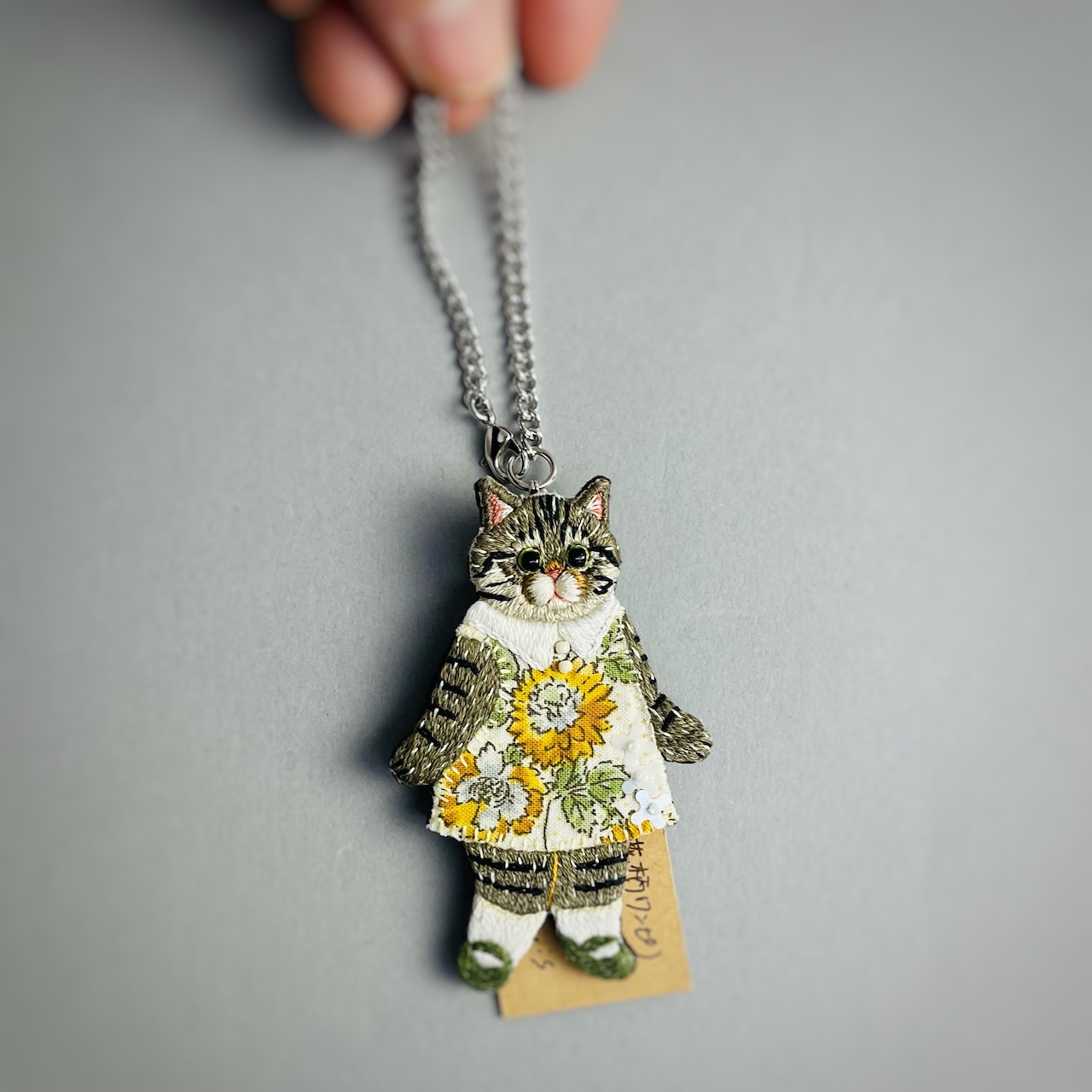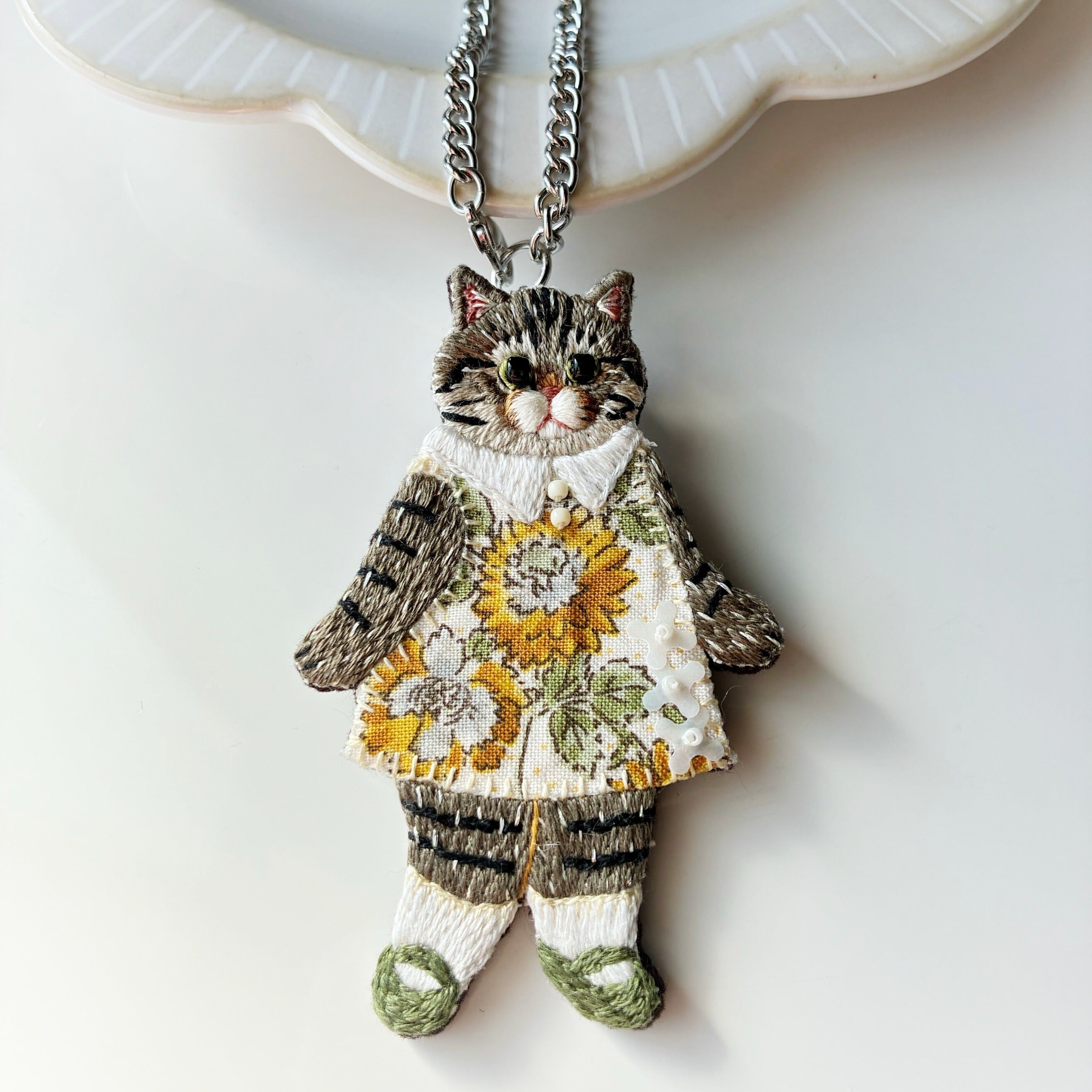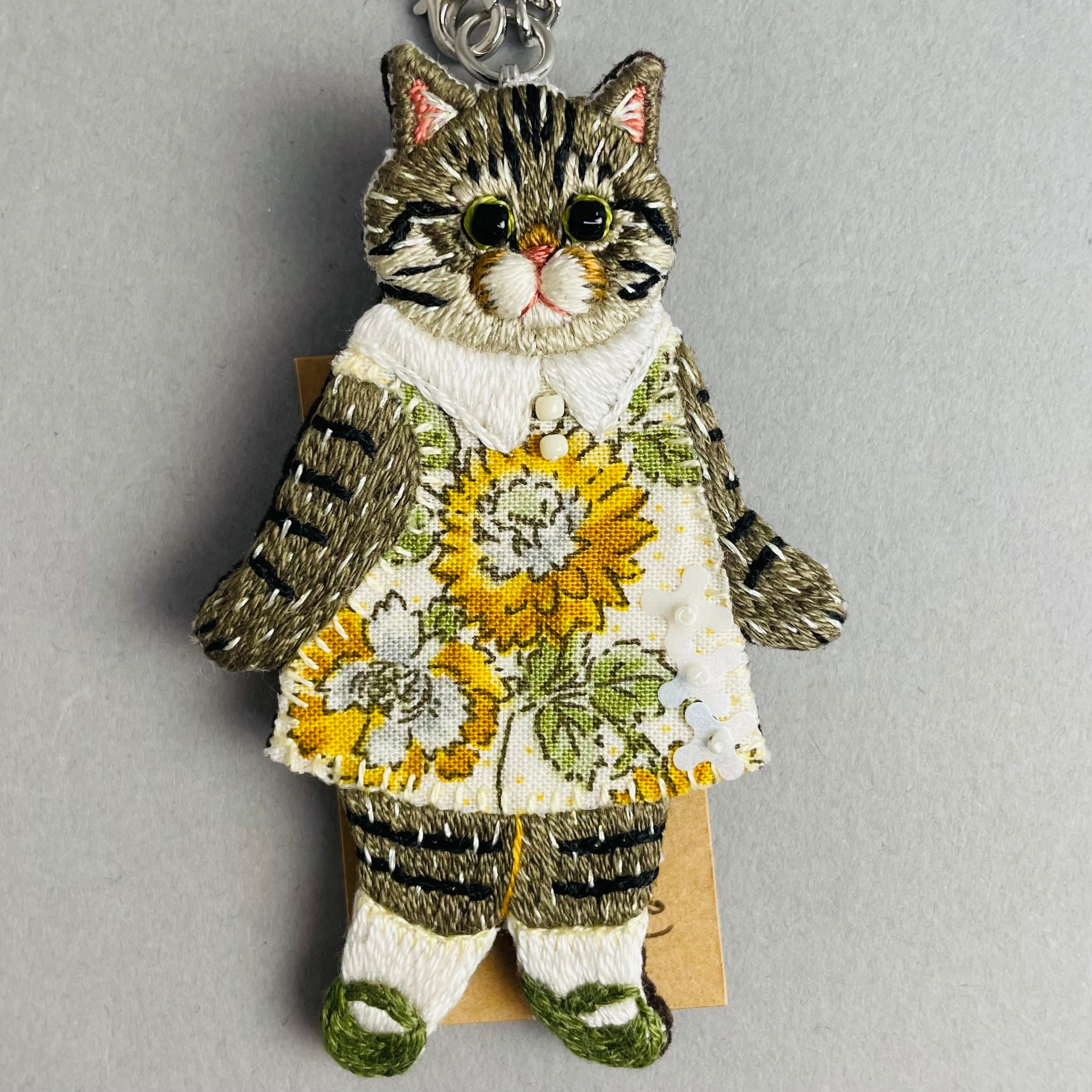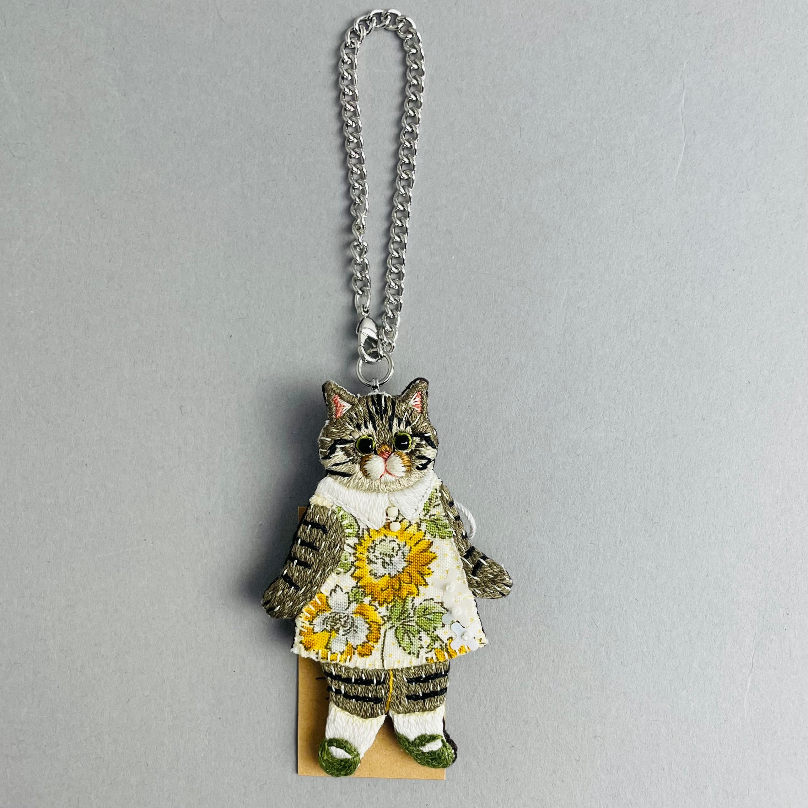 異素材を組み合わせて作った、 お洋服を着た猫ちゃん作品です。