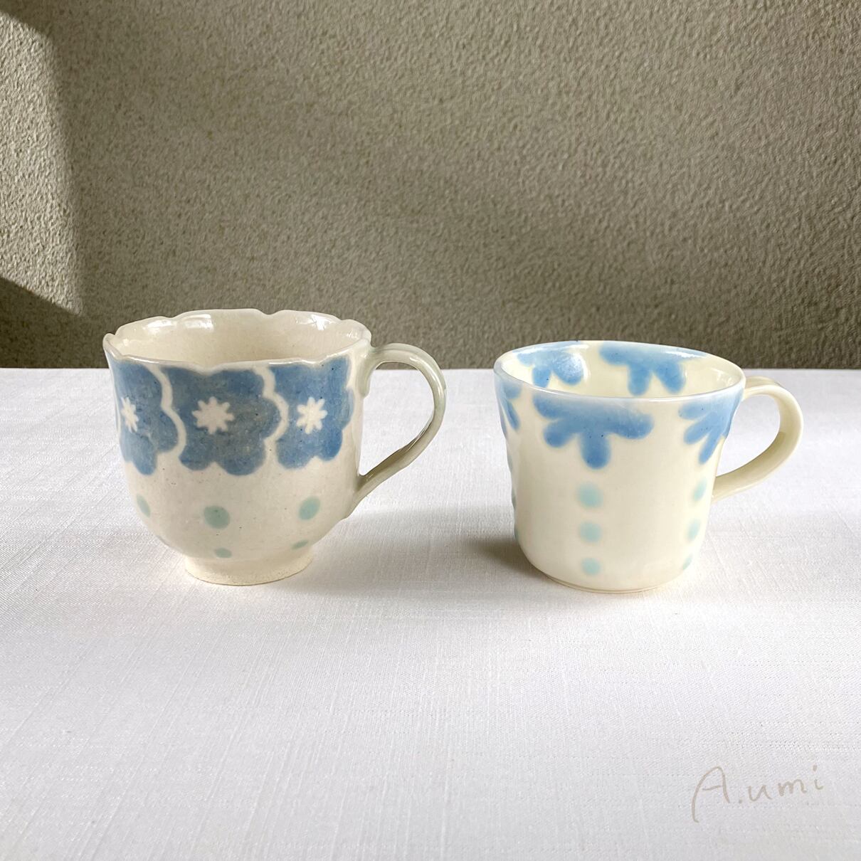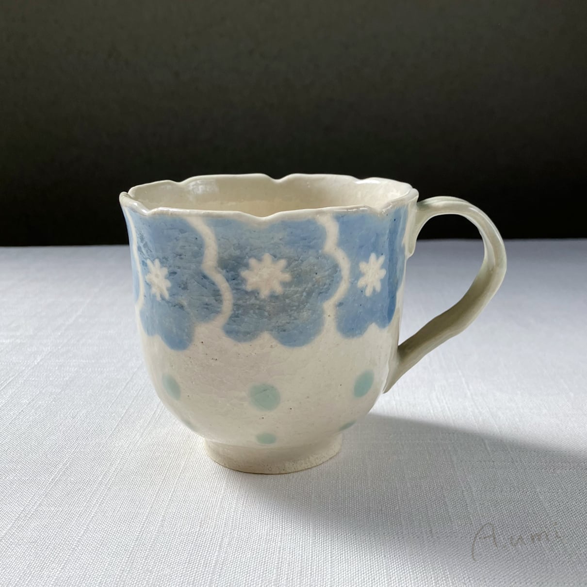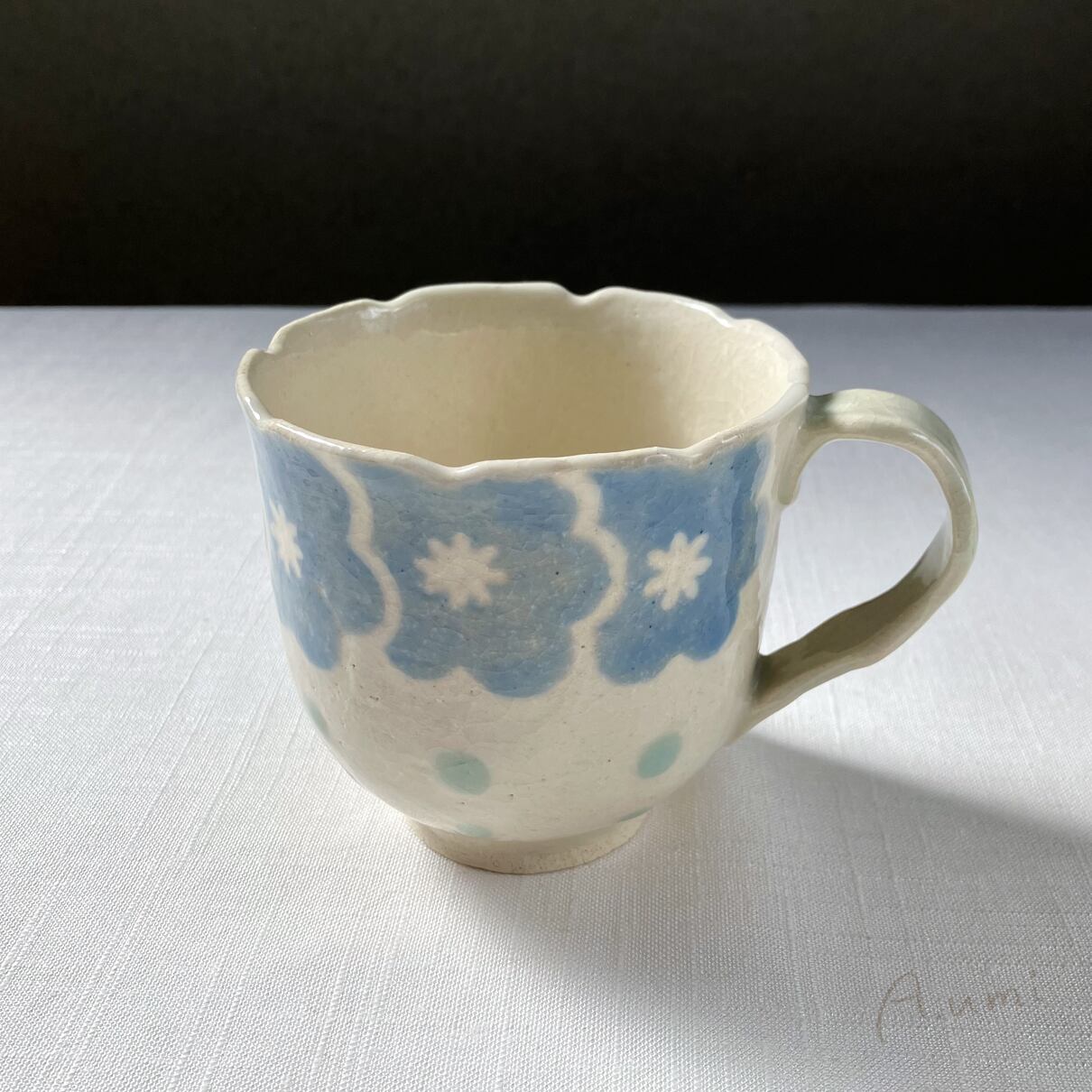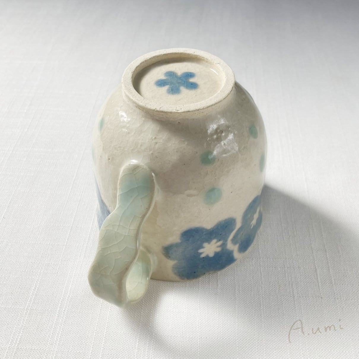 爽やかな色合いと、リズミカ ルな花模様が印象的なマグ カップです。