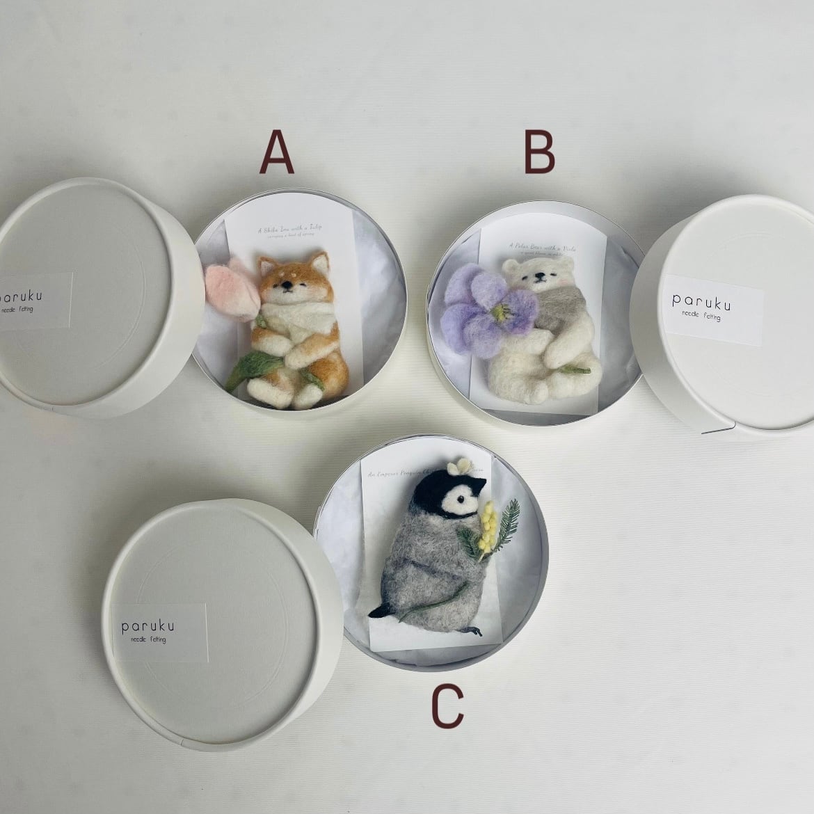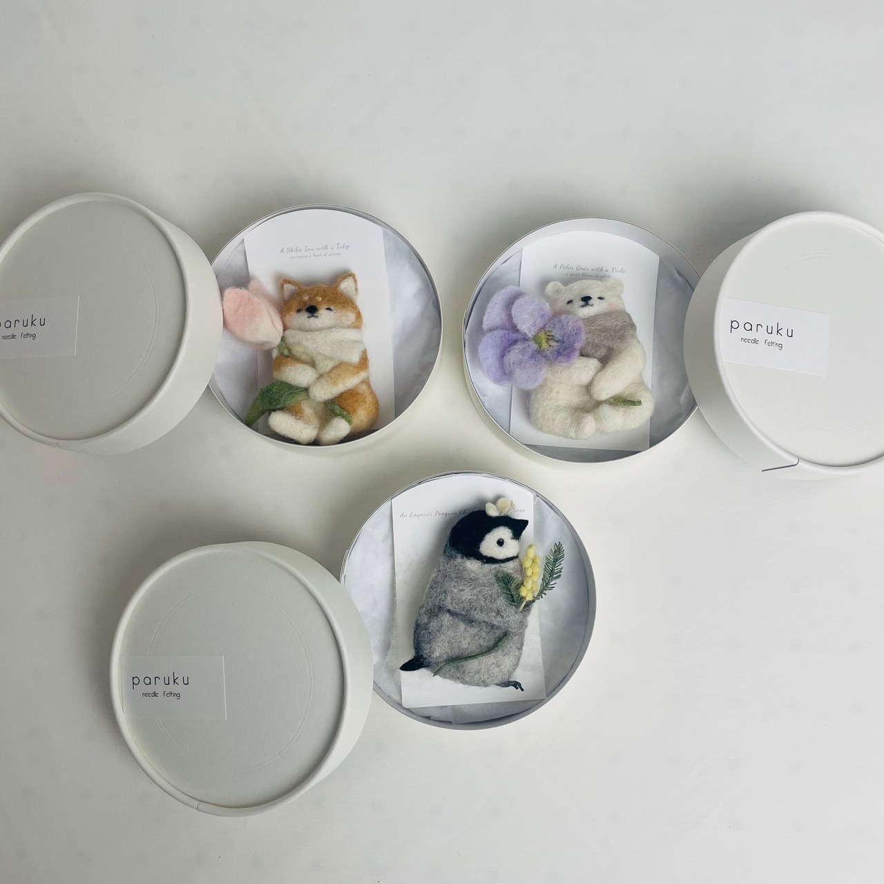 季節の花を大切に抱える動物たちを作りました。