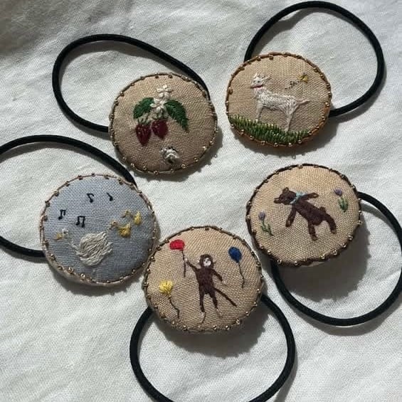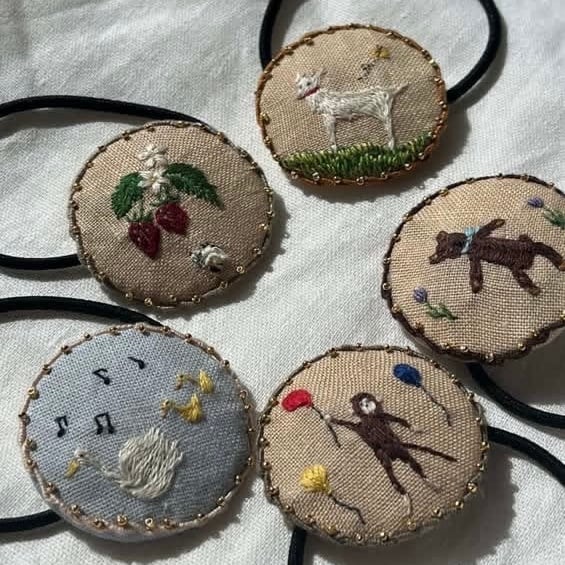 【物語刺繍のヘアゴム】丸直径約4㎝