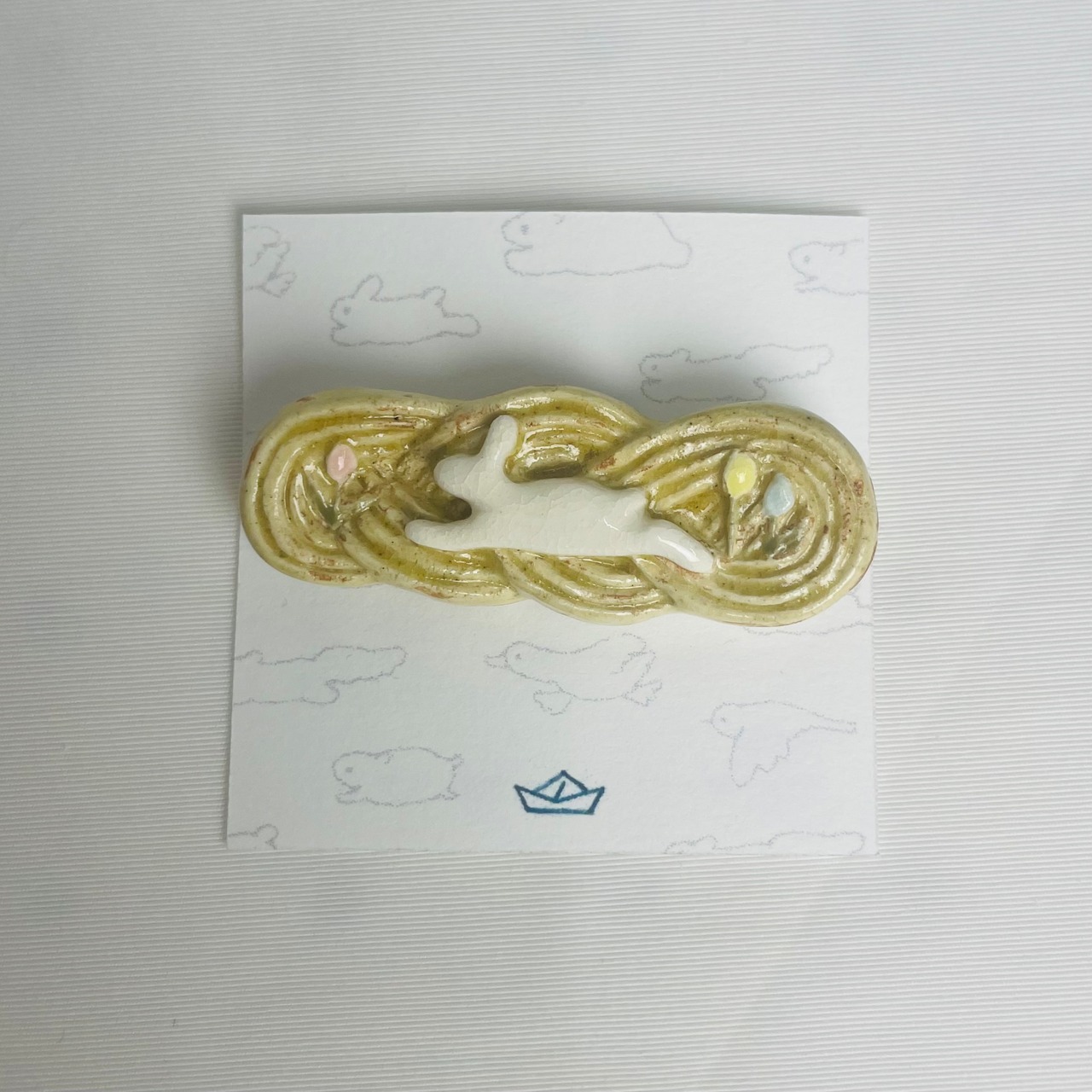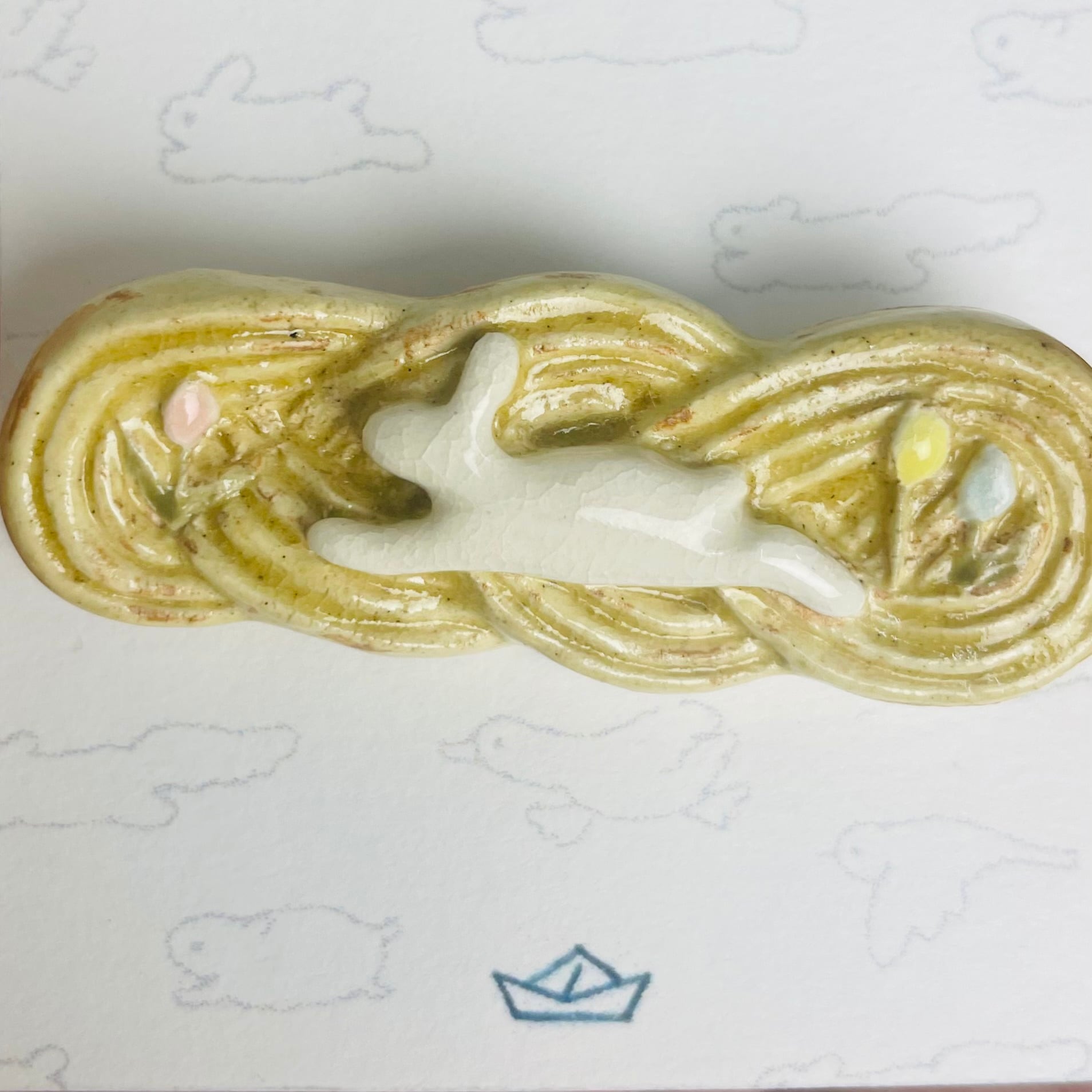 春、草花の間をぴょんと跳び回る野うさぎをイメージしました。