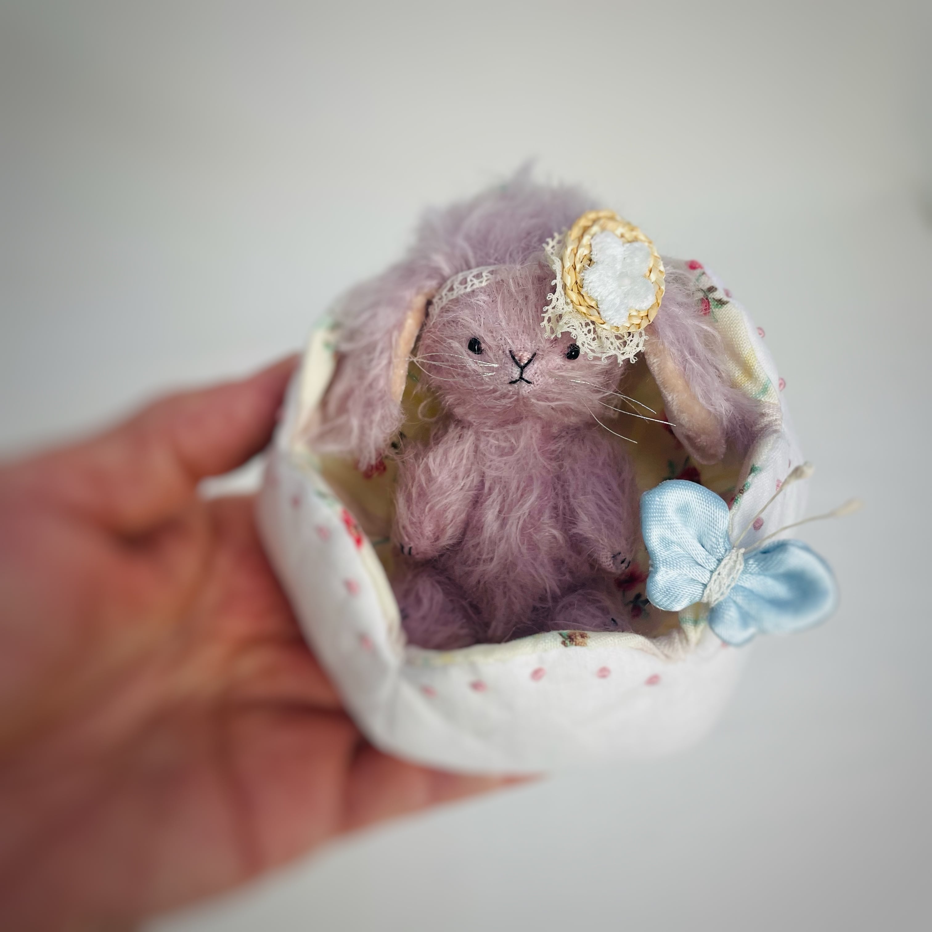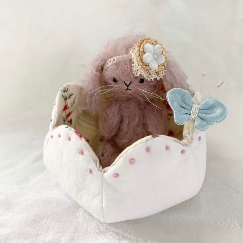 チューリップのお花にちょこんと座っているたれ耳うさぎを製作しました。
