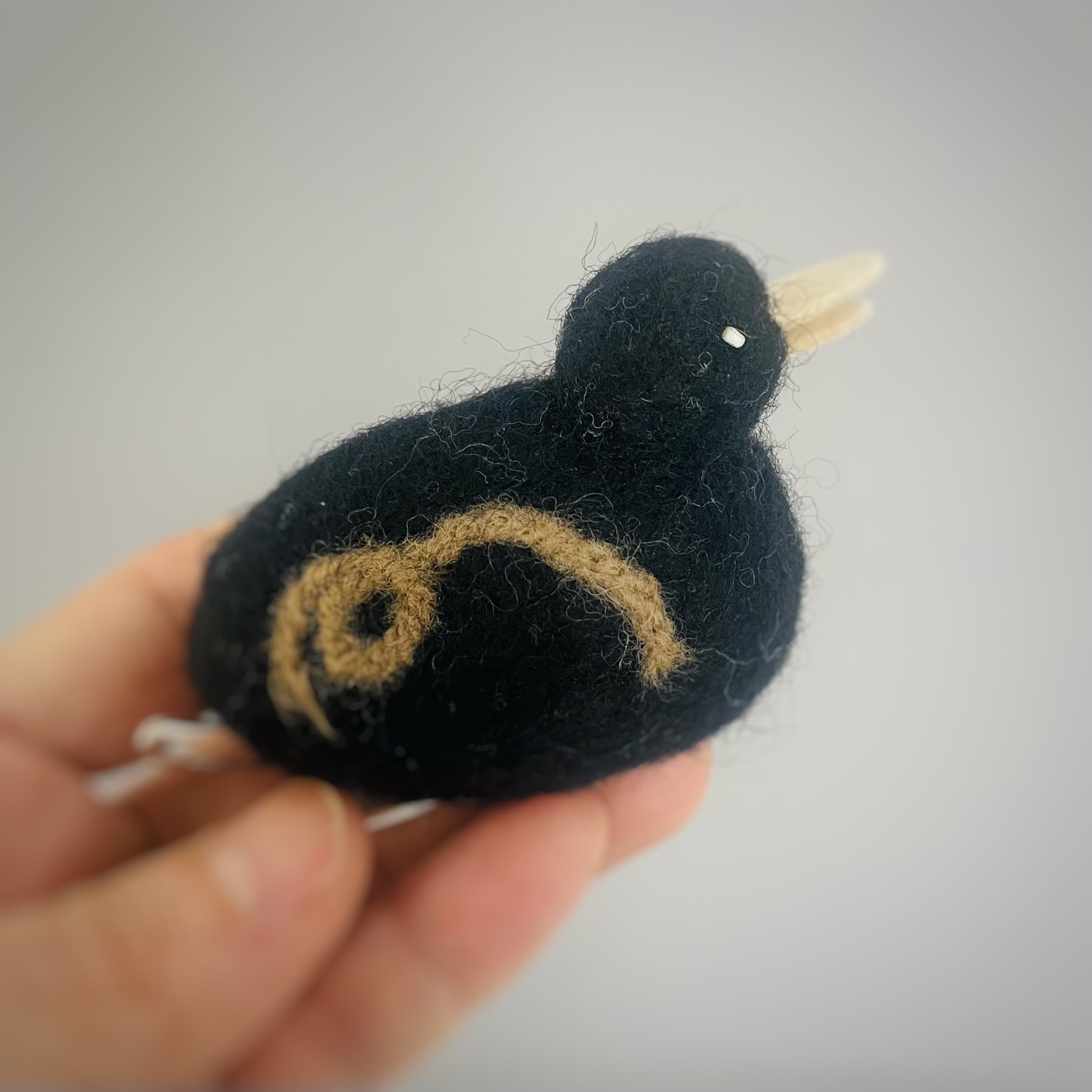 【羊毛 wool カモ・黒】 横約6.5㎝ 高さ約5㎝